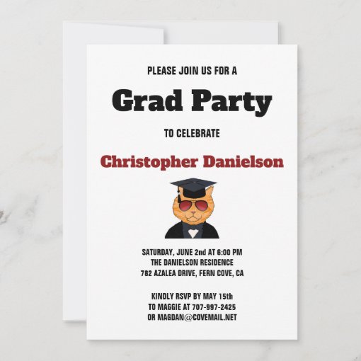 Cool Cat graduation party invitation | Zazzle