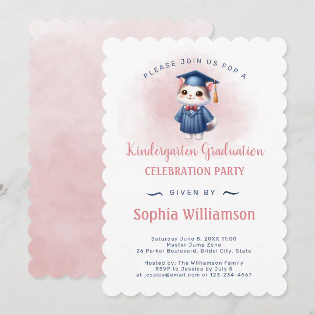 Kindergarten Graduation Cat for Girl Invitation | Zazzle