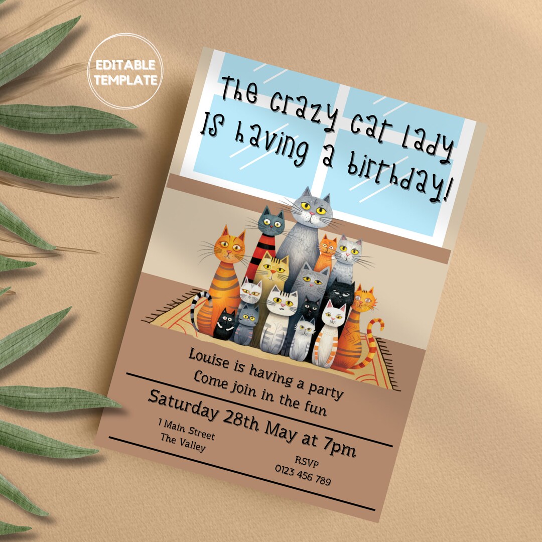 EDITABLE Cat Birthday Invitation Personalized Invitation - Etsy
