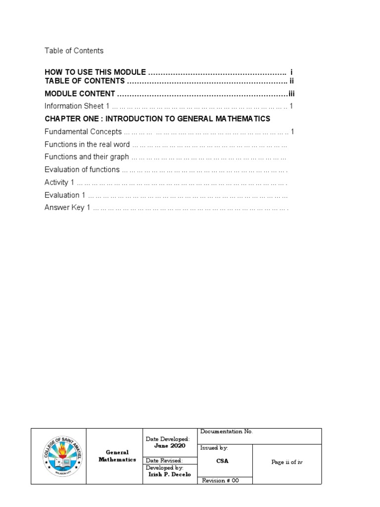 HOW TO USE THIS MODULE .. I TABLE OF CONTENTS .. II MODULE CONTENT III ...