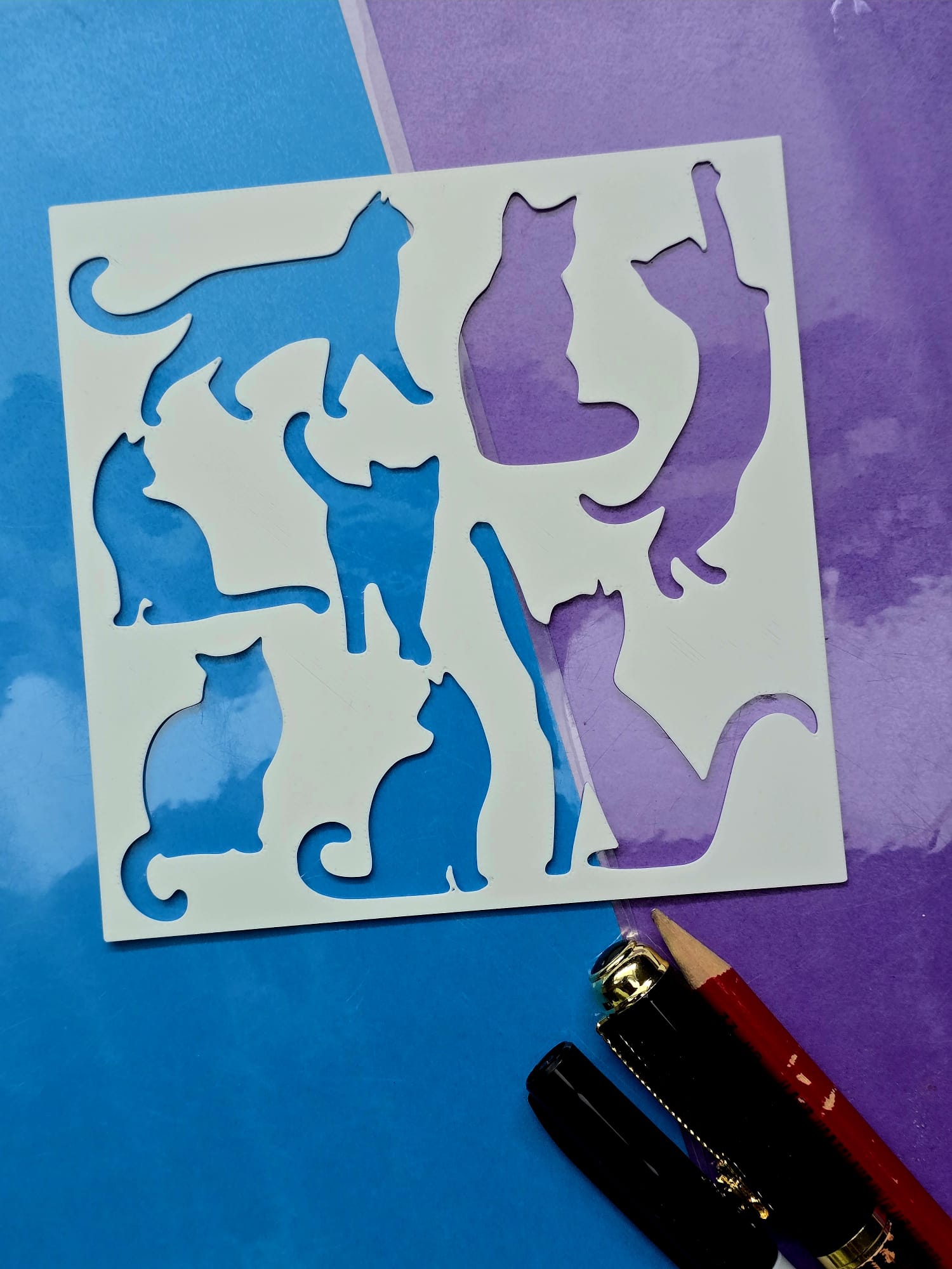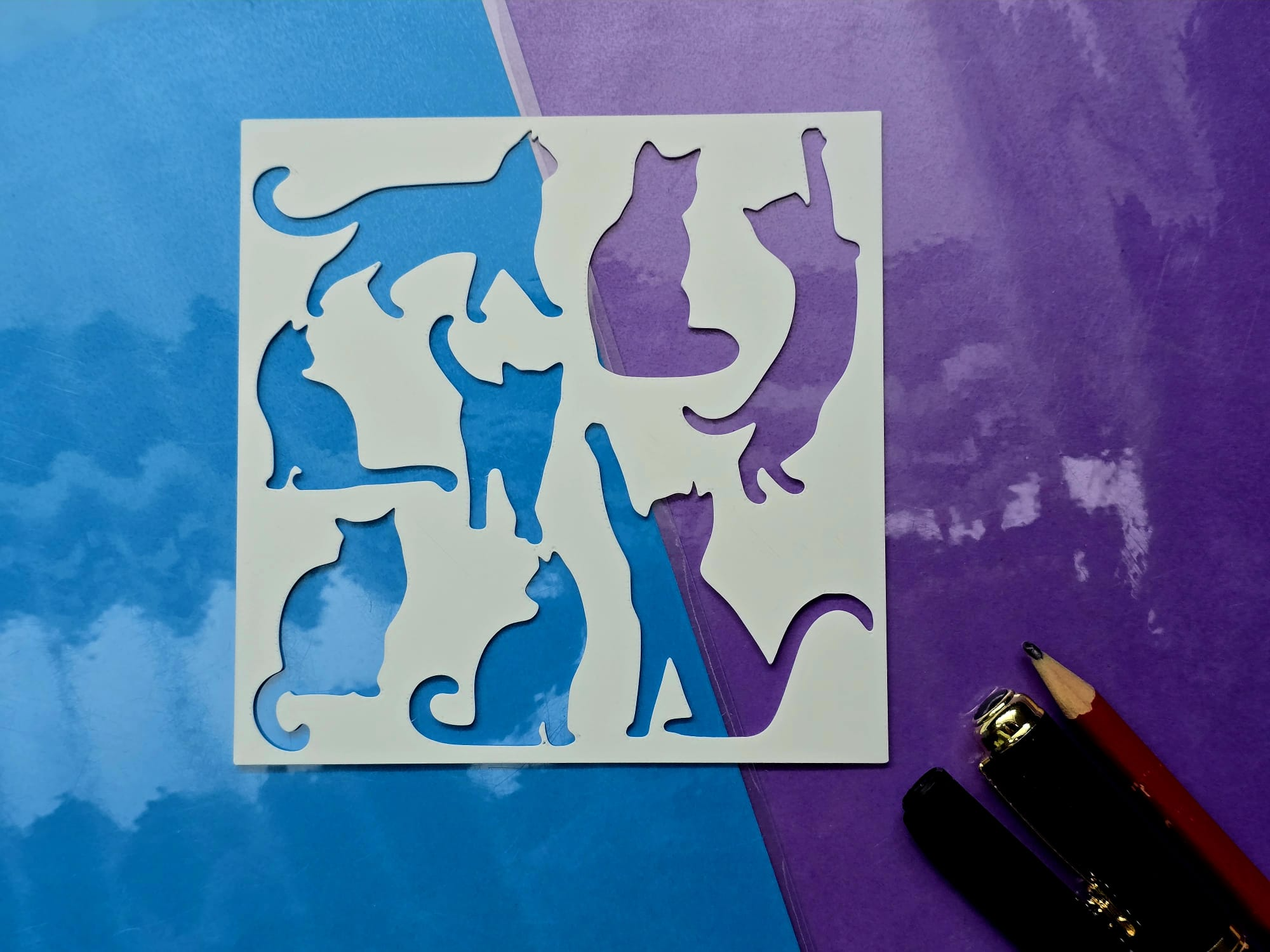 Peeking Cat Painting Stencil Reusable Cute Cat Drawing Stencil Cat ...
