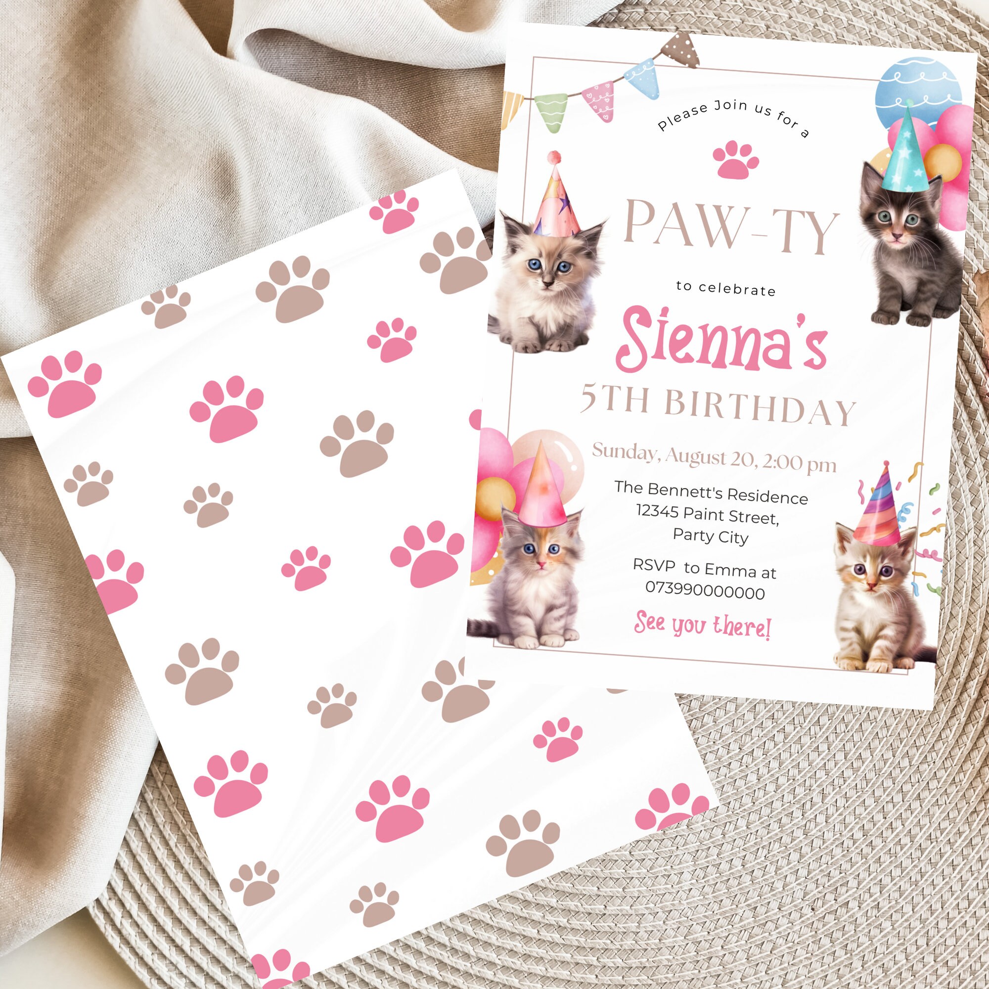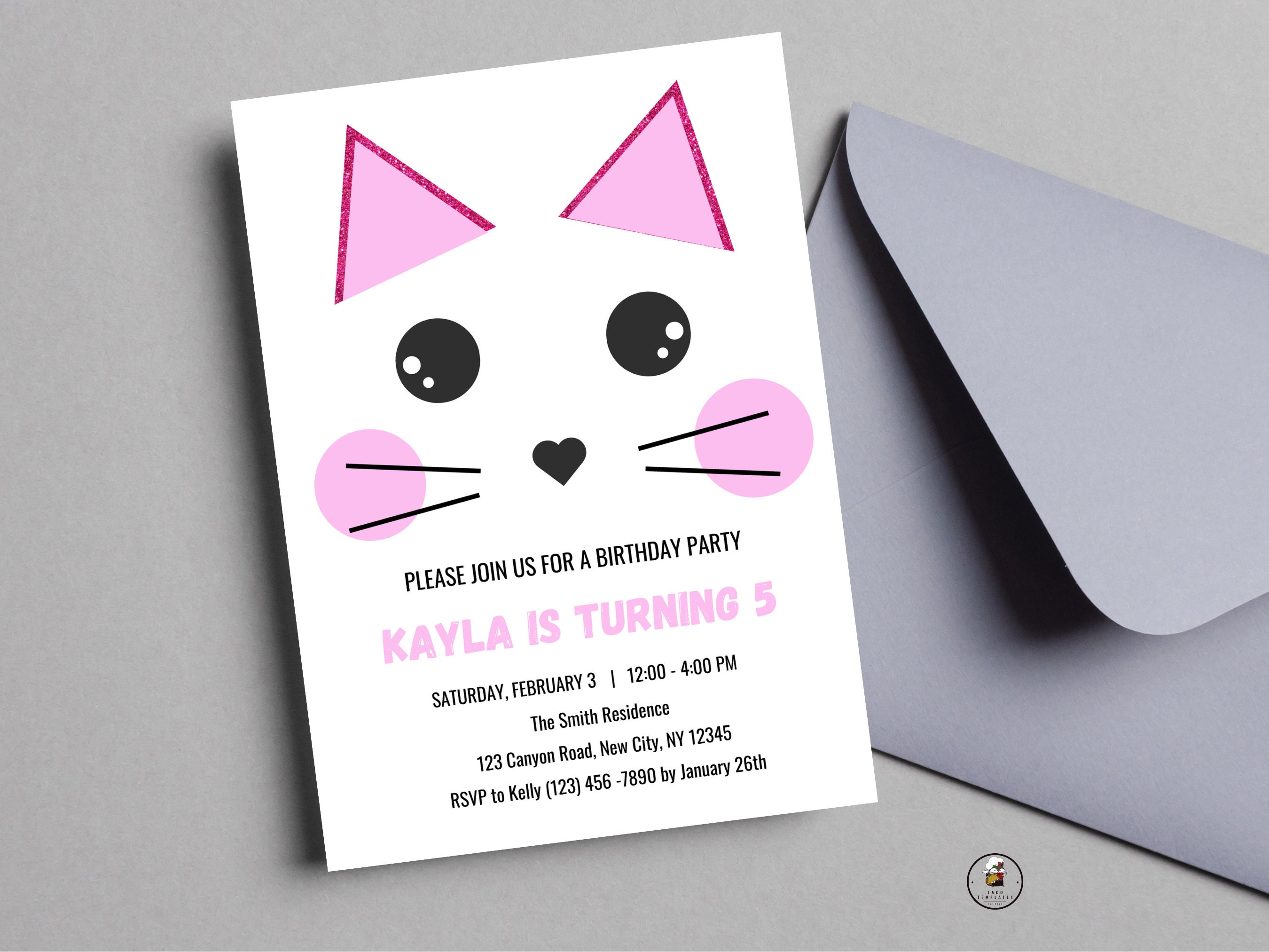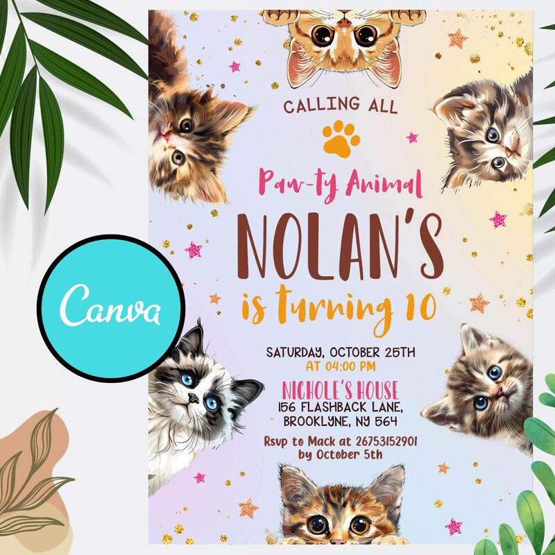 Cat Birthday Invitation: Editable Kitten Party Template (5x7 Size) - Etsy