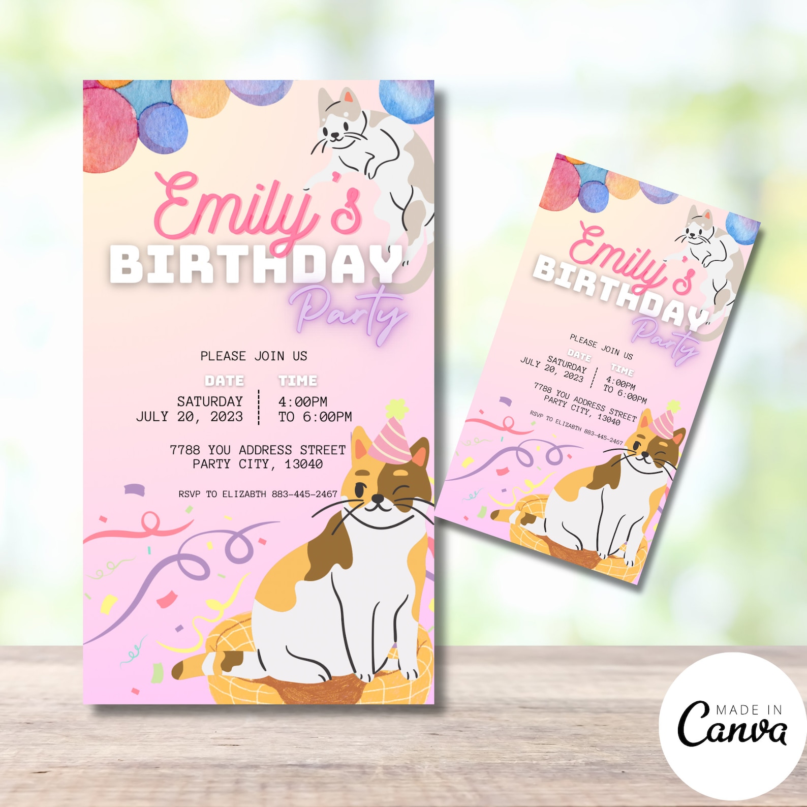 Cute Cat Invitation Template, Editable Kitten Invitation, Girls Cat ...