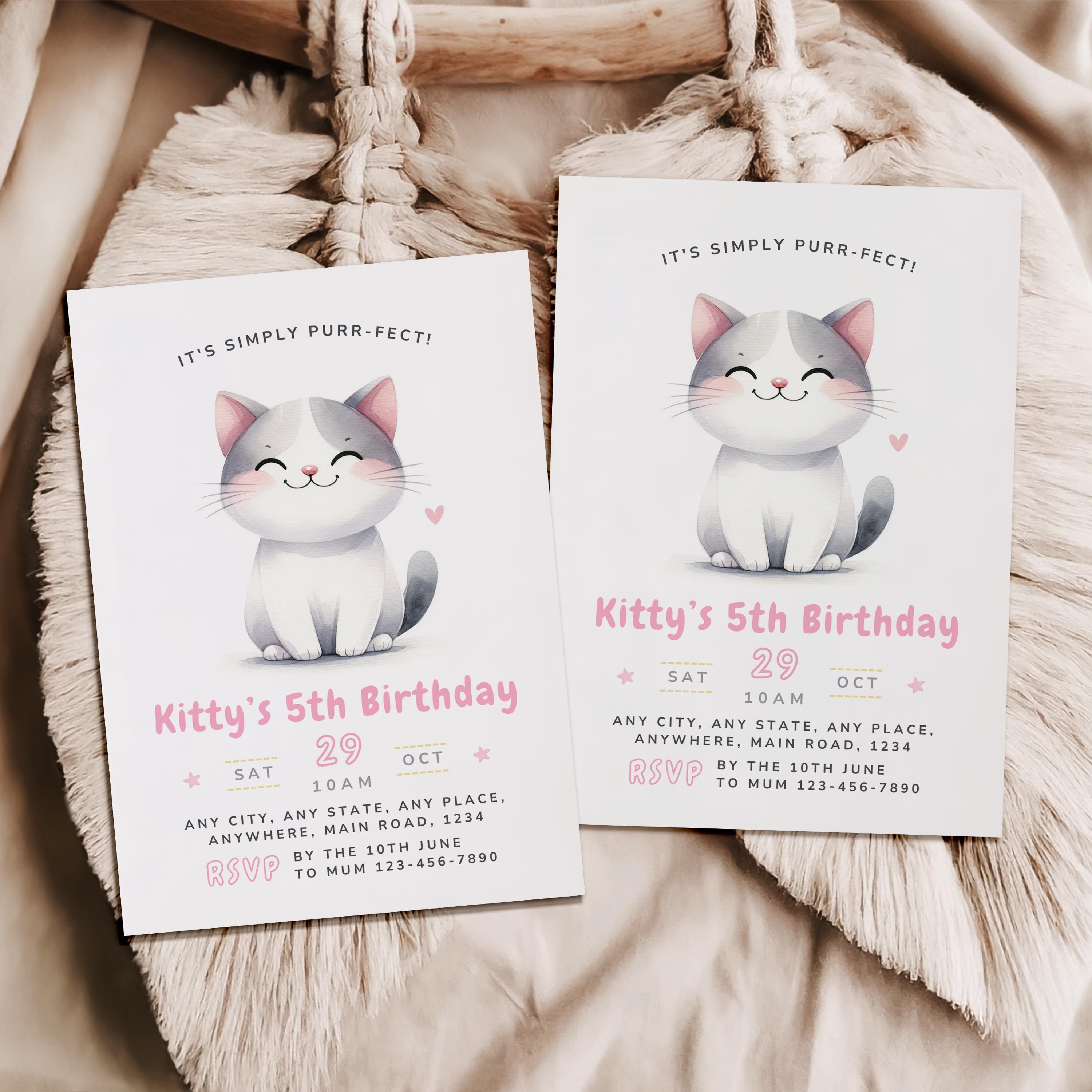 Editable Kitty Cat Birthday Invitation Perfect Party Invite Template ...