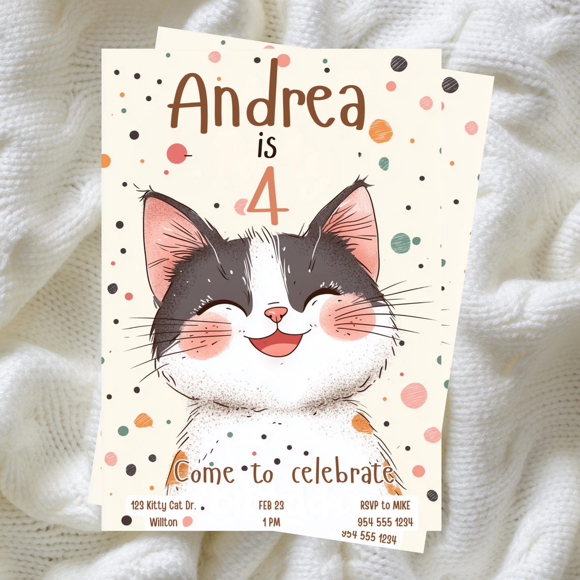 EDITABLE Cat Birthday Invitation Personalized Invitation - Etsy