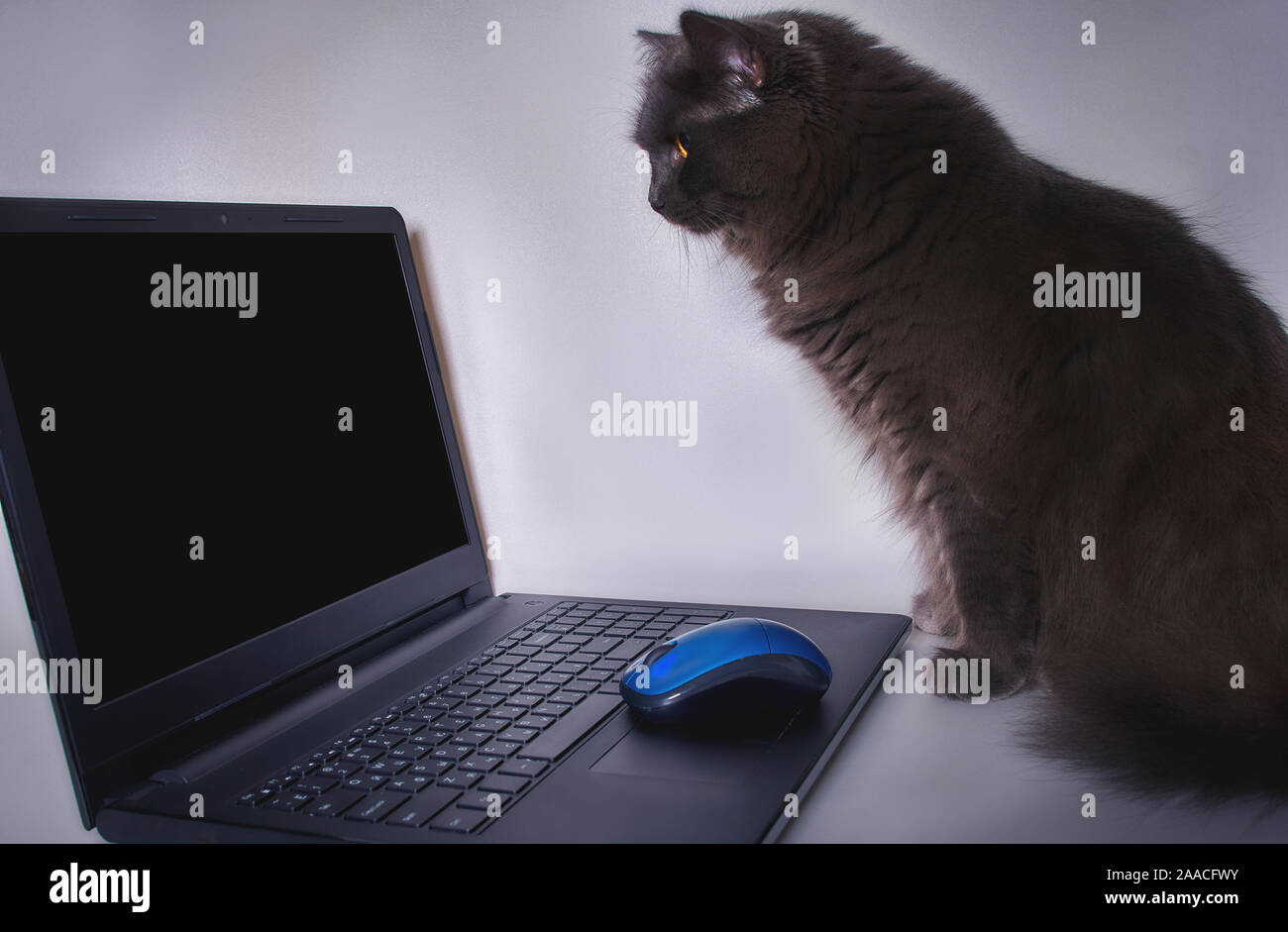 Cat Using Computer With Dark Background Stock Photo - Download Image ...