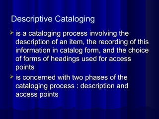 Descriptive cataloging: Overview | PPT