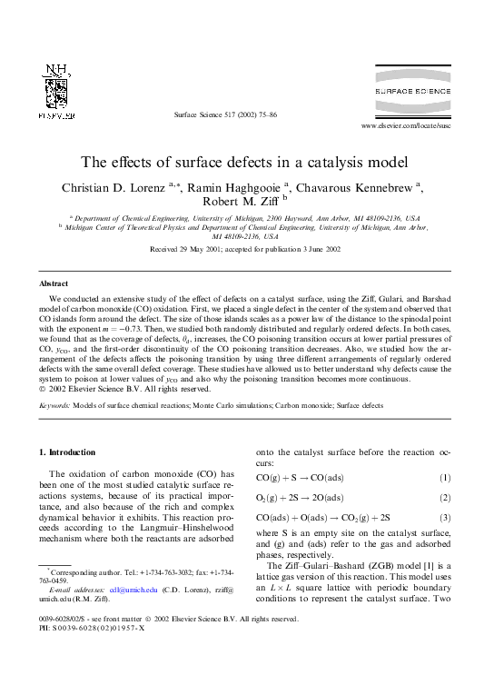 (PDF) The effects of surface defects in a catalysis model
