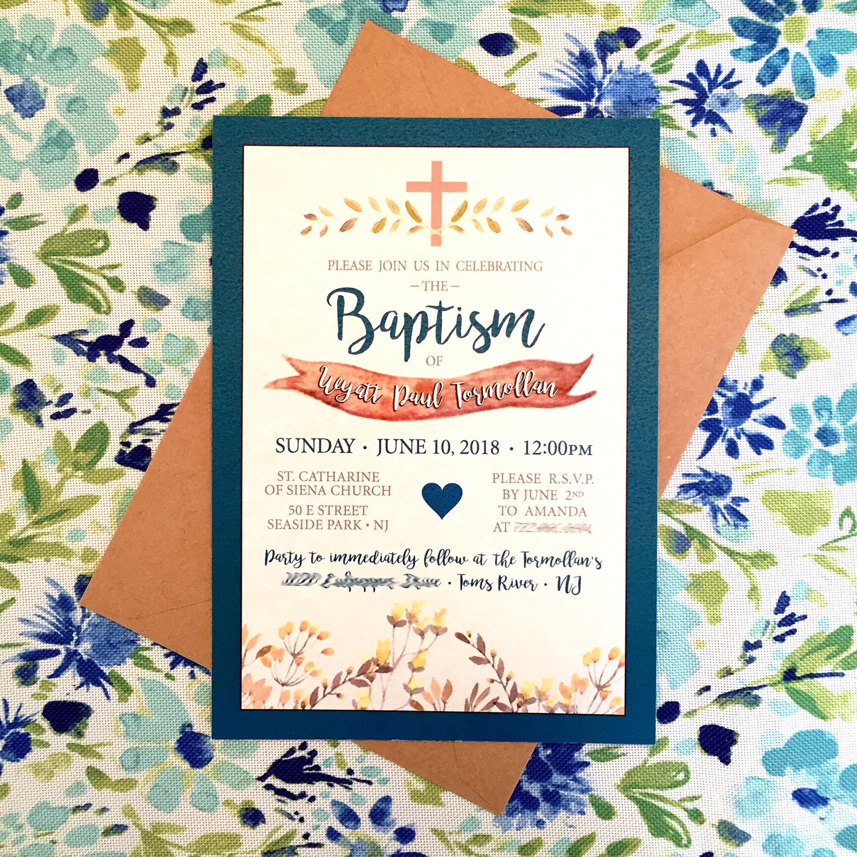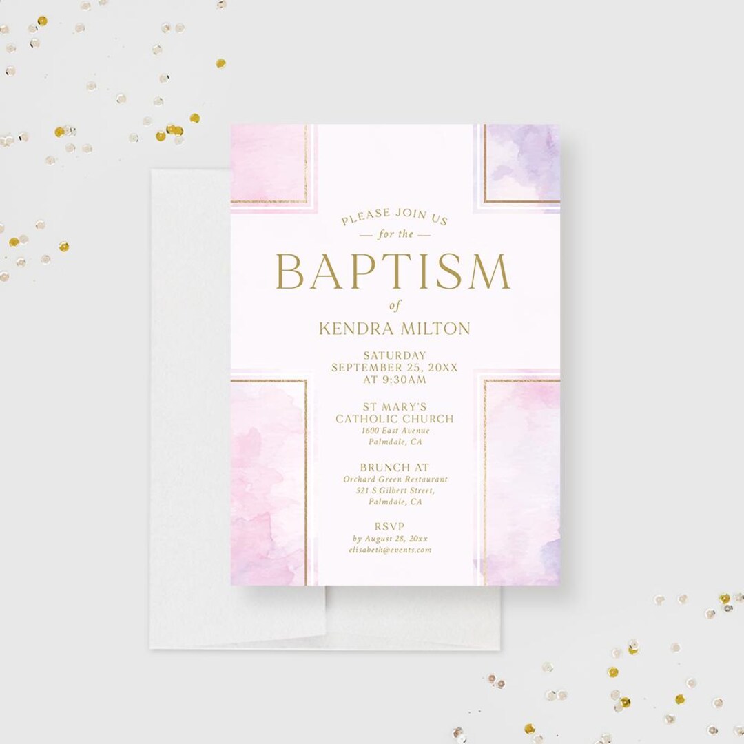 Baptism Religious Theme Invitation Watercolor Custom Baby | Etsy