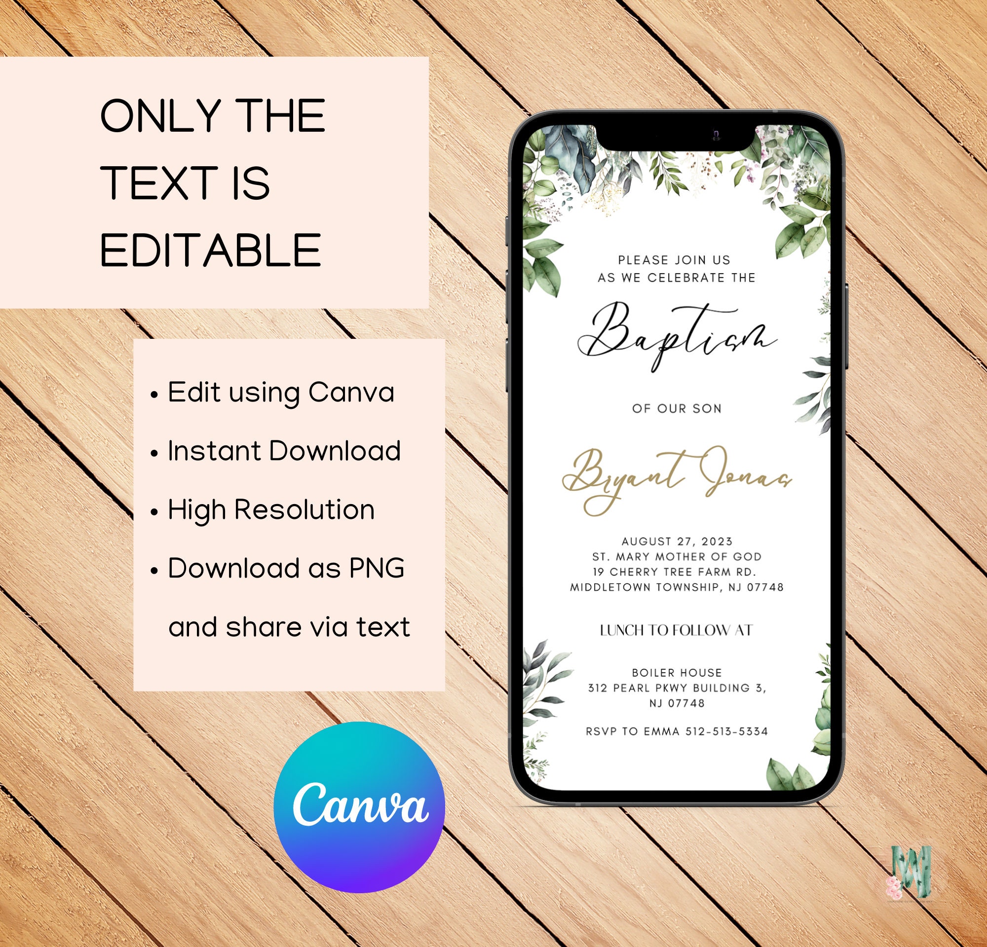 Baptism Invitation Template, Christening Invite Digital Download ...