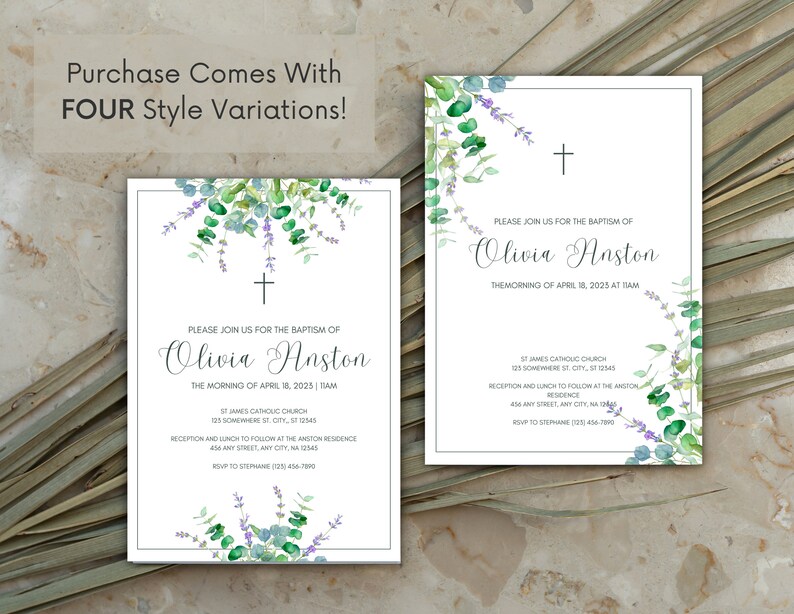 Printable Baptism Invitation Catholic Baptism Invitation Greenery Holy ...