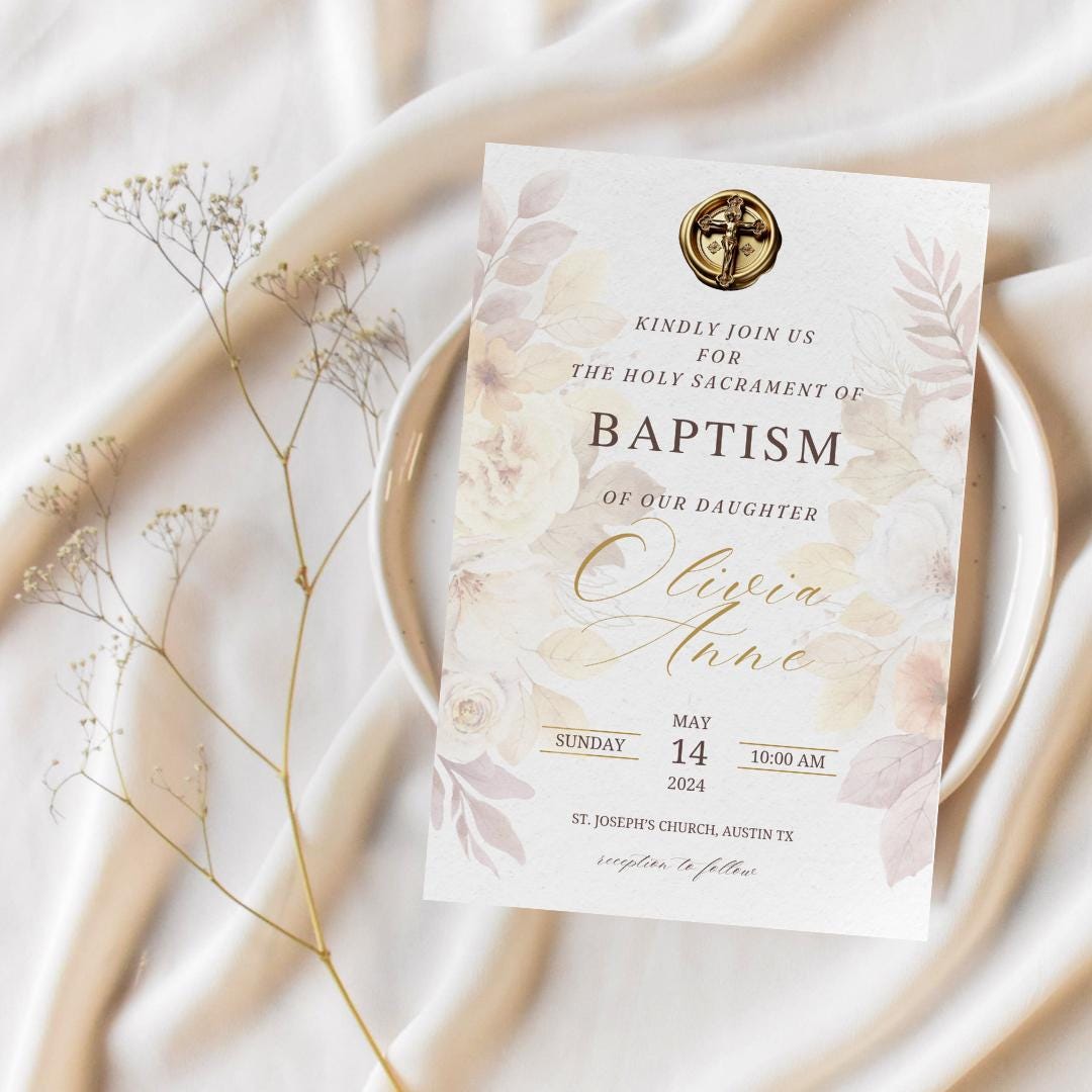 Catholic Baptism Invitation Template: Fall Floral Christening (PDF) - Etsy