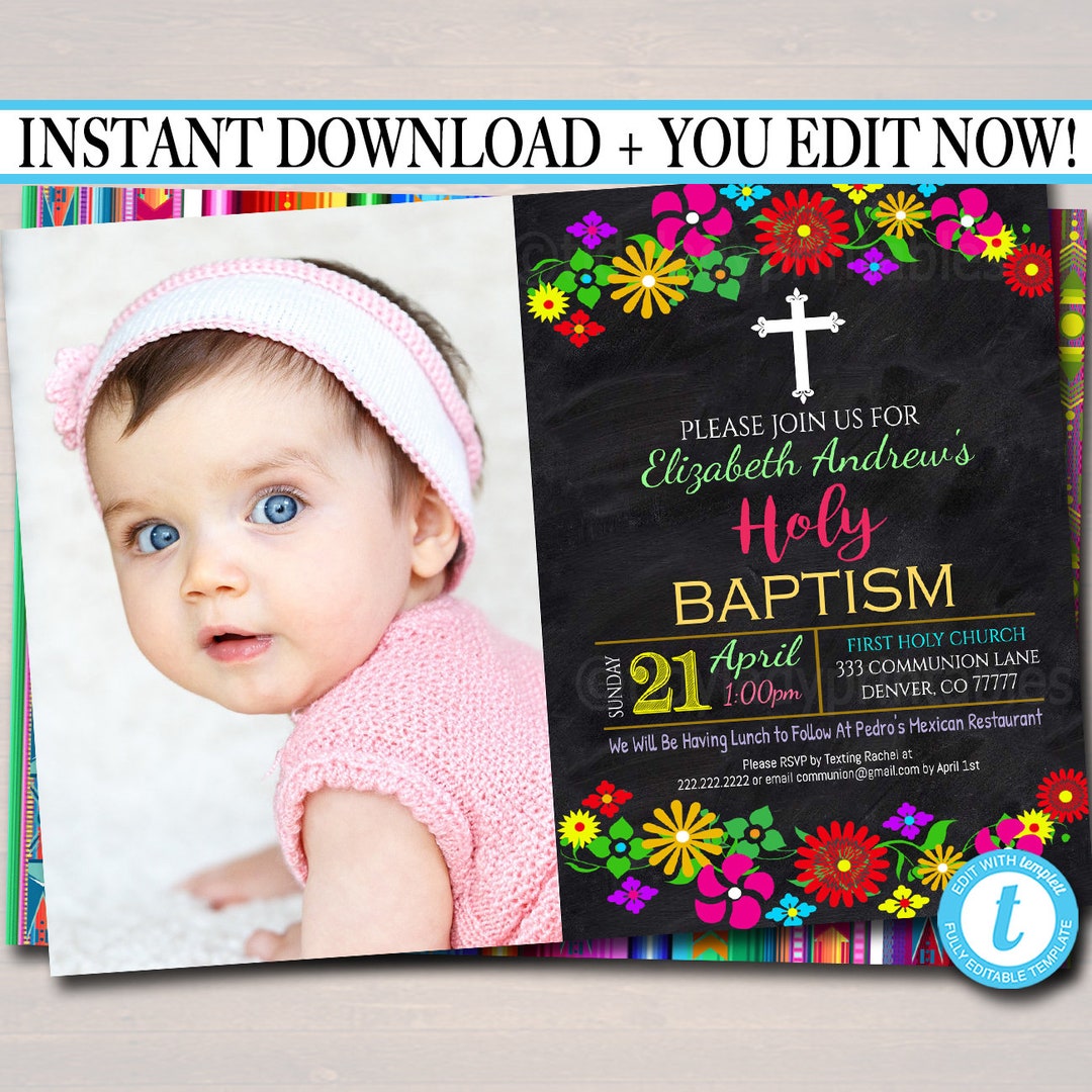 EDITABLE Religious Invitation, Holy Christian Baptism Invite Diy ...