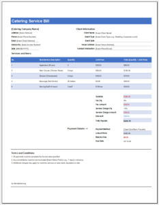 Catering Service Invoice Template in GDocsLink, Pages, Numbers, MS Word ...