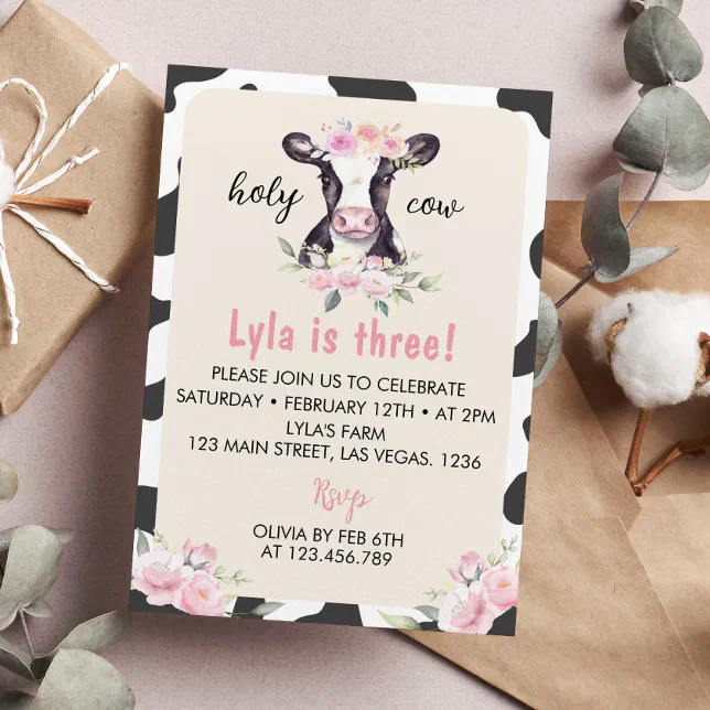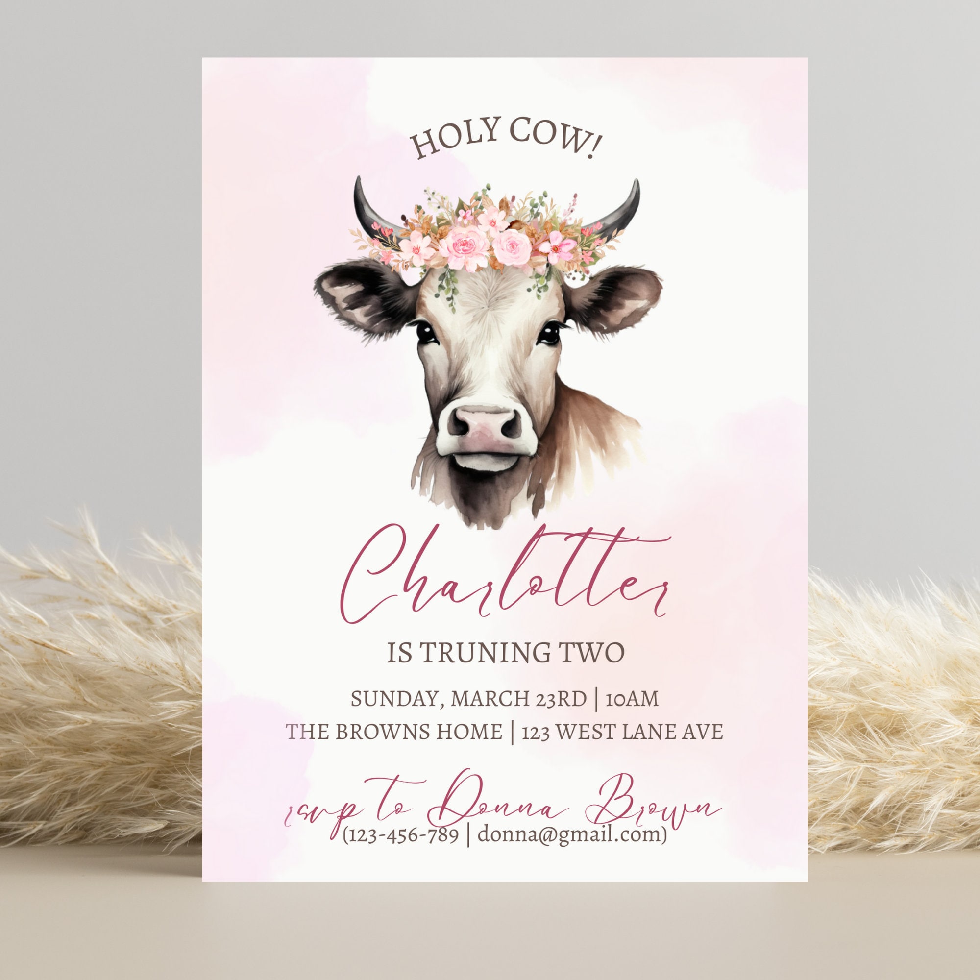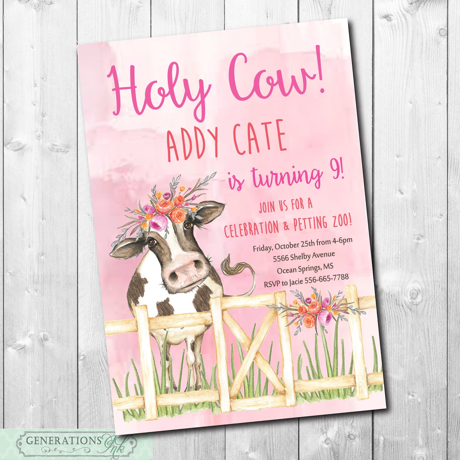 Editable Cow Theme Birthday Party Invitation, Holy Cow Invite, Farm Cow ...
