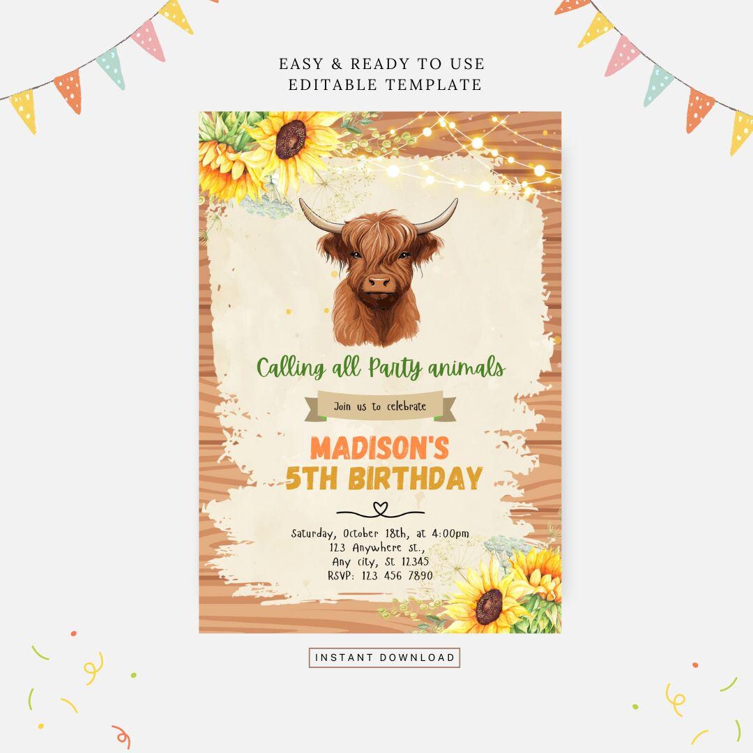 Editable Highland Cow Invitation Template, Highland Cow Invitation ...