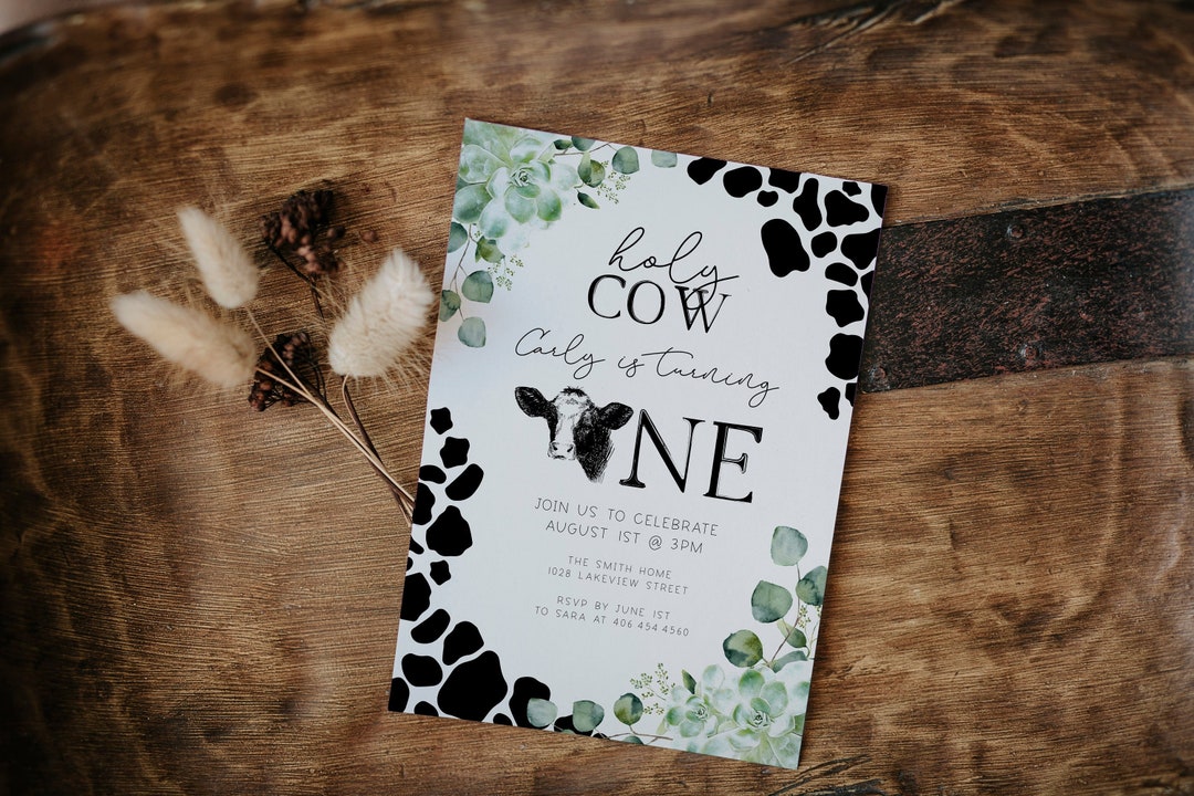 EDITABLE Holy Cow I'm One Invitation, Cow Any Age Birthday Invitation ...