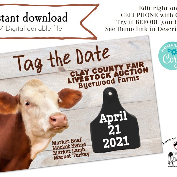 County Livestock Auction Save the Date Invitation, 3 Photos Editable - Etsy