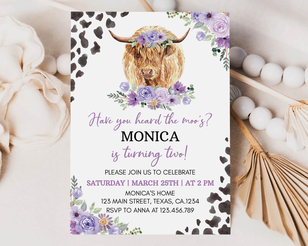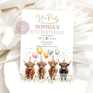 Editable Highland Cow Birthday Invitation Holy Cow Invitation Girls ...