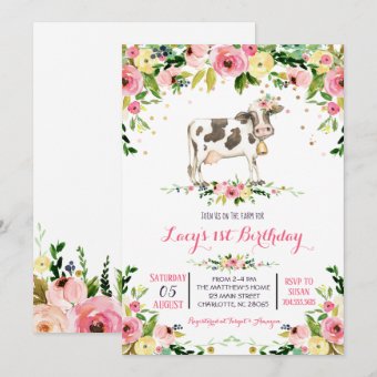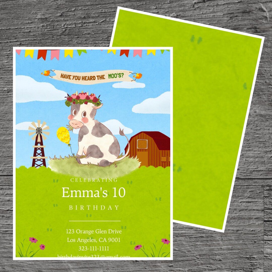 Cow Birthday Invitation Farm Party Invite Animal Celebration Cute ...