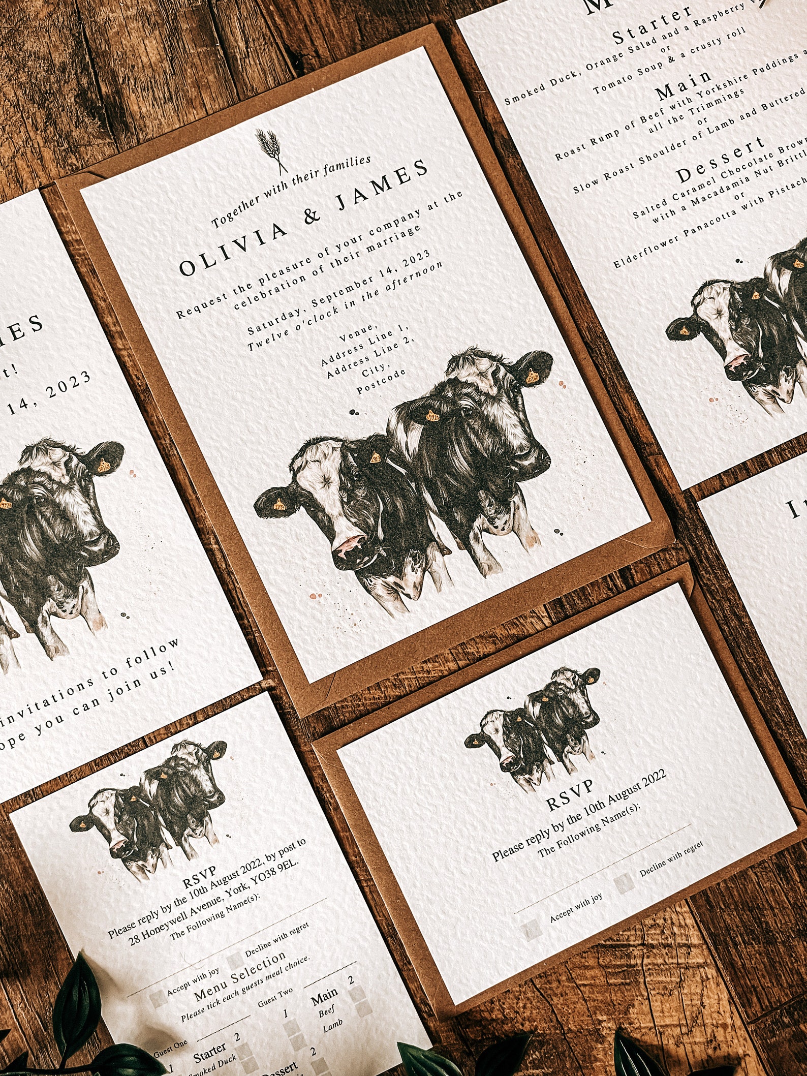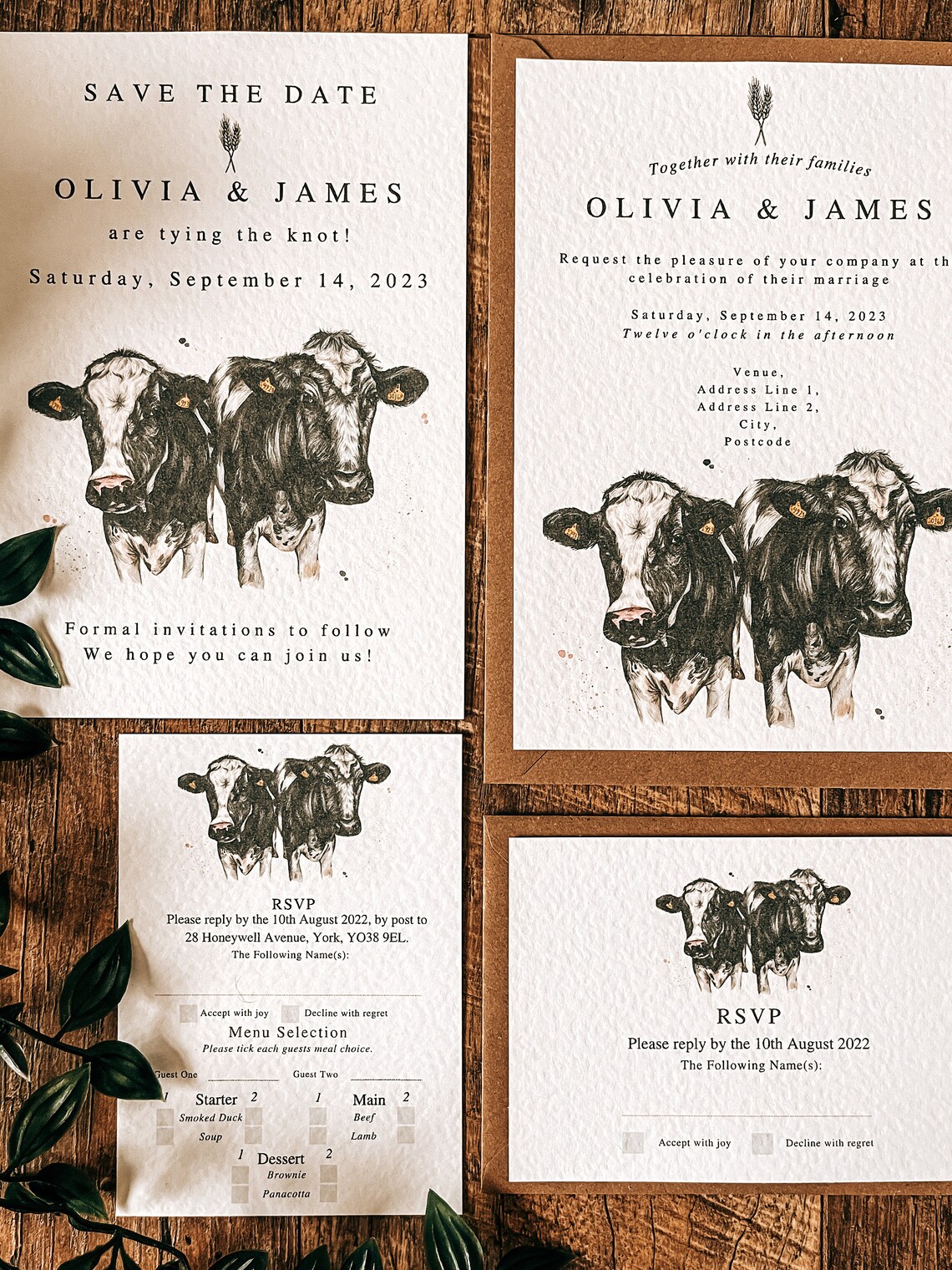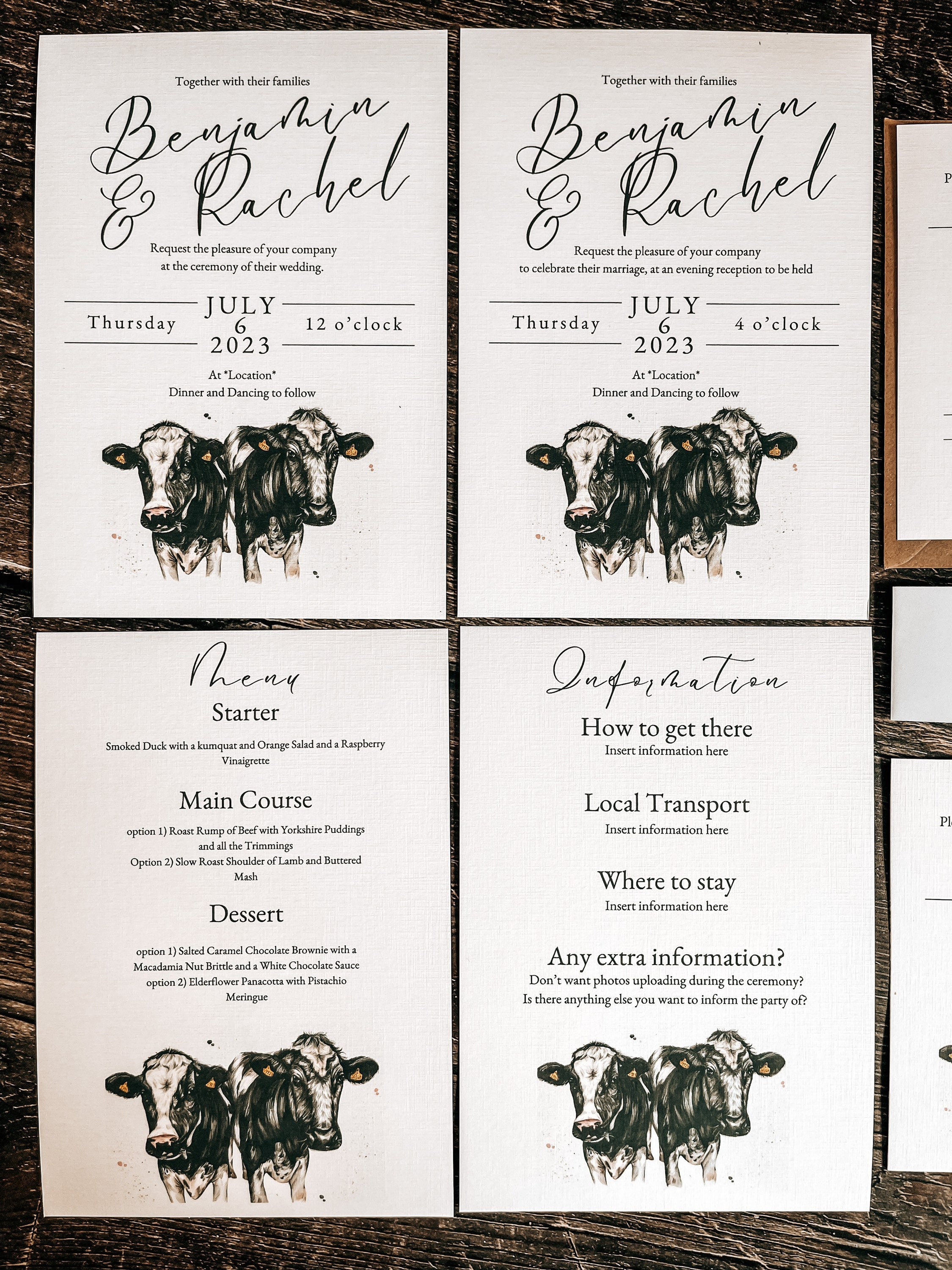 SAMPLE ONLY* Friesian Holstein Cow Wedding Stationery, Invitation, Save ...