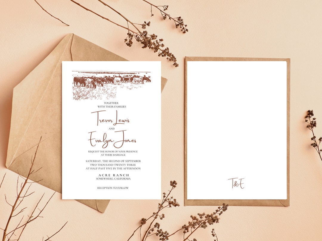 Grazing Cattle Wedding Invitation Card Western Suite Template Download ...