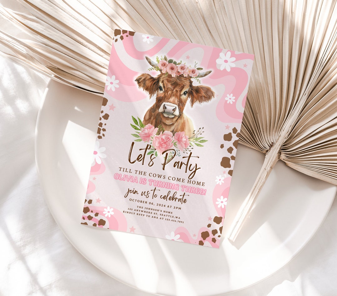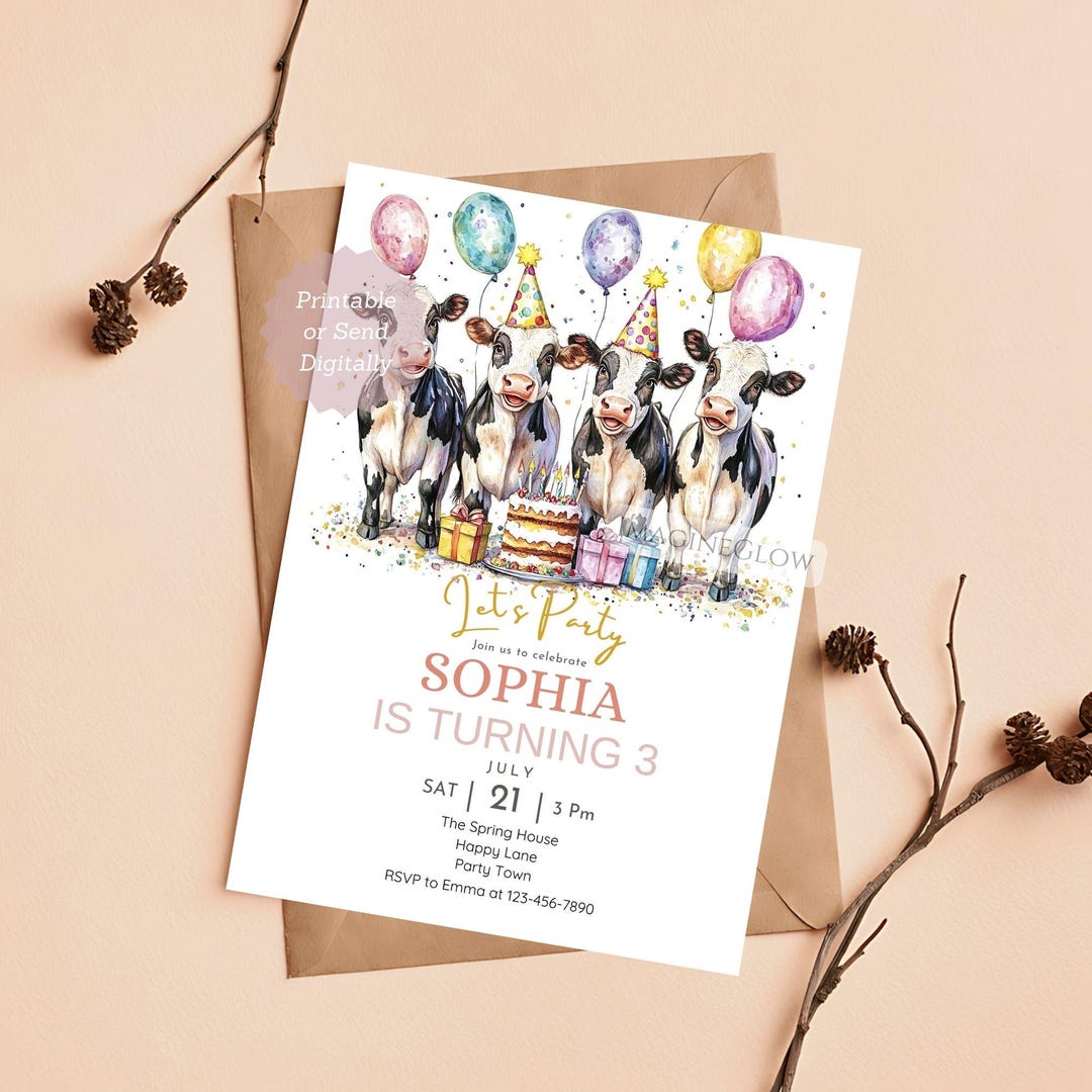 Cow Birthday Invitation, Farm Birthday Invitation, Cow Party, Girl ...