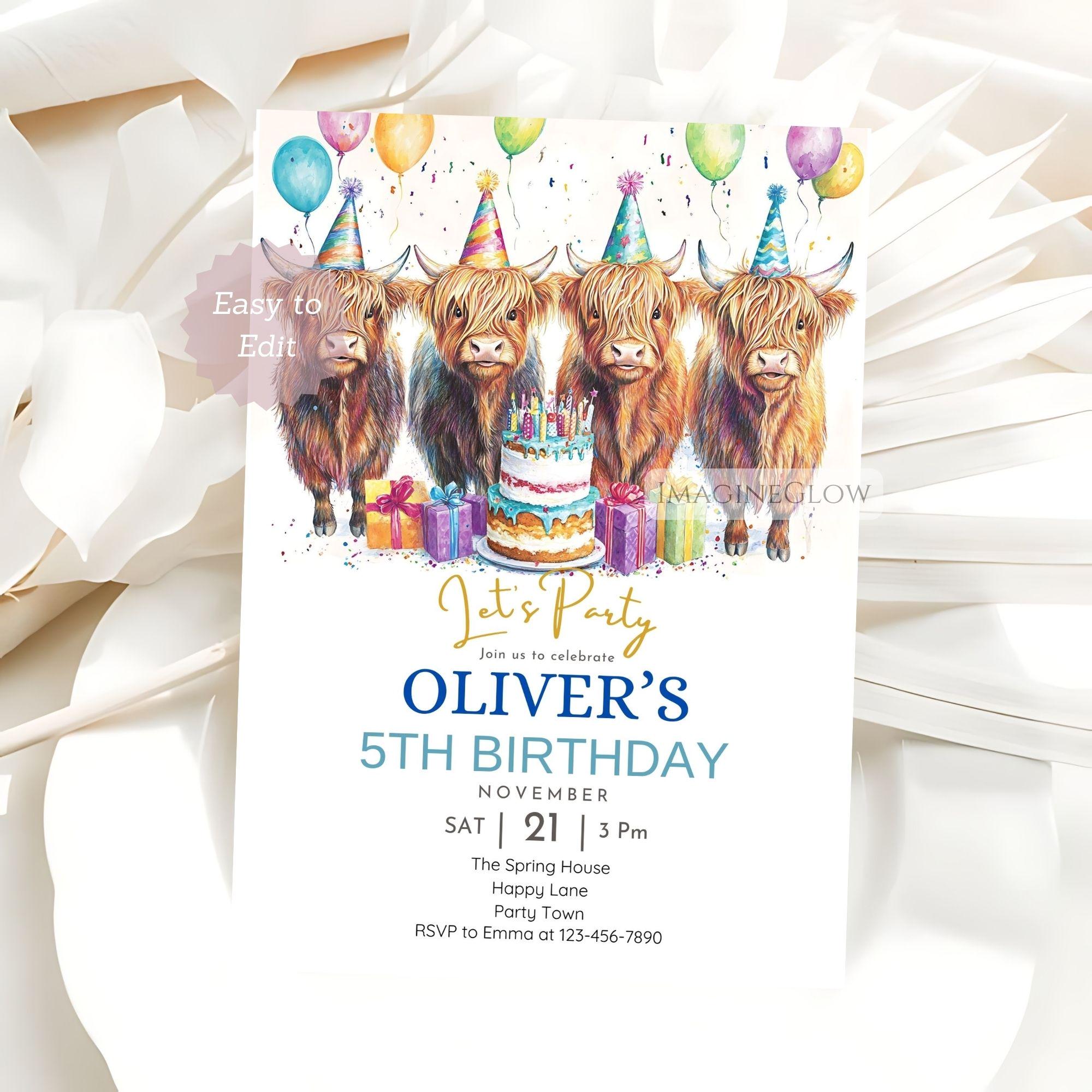 Highland Cow Birthday Invitation Farm Party Invite Animal Celebration ...