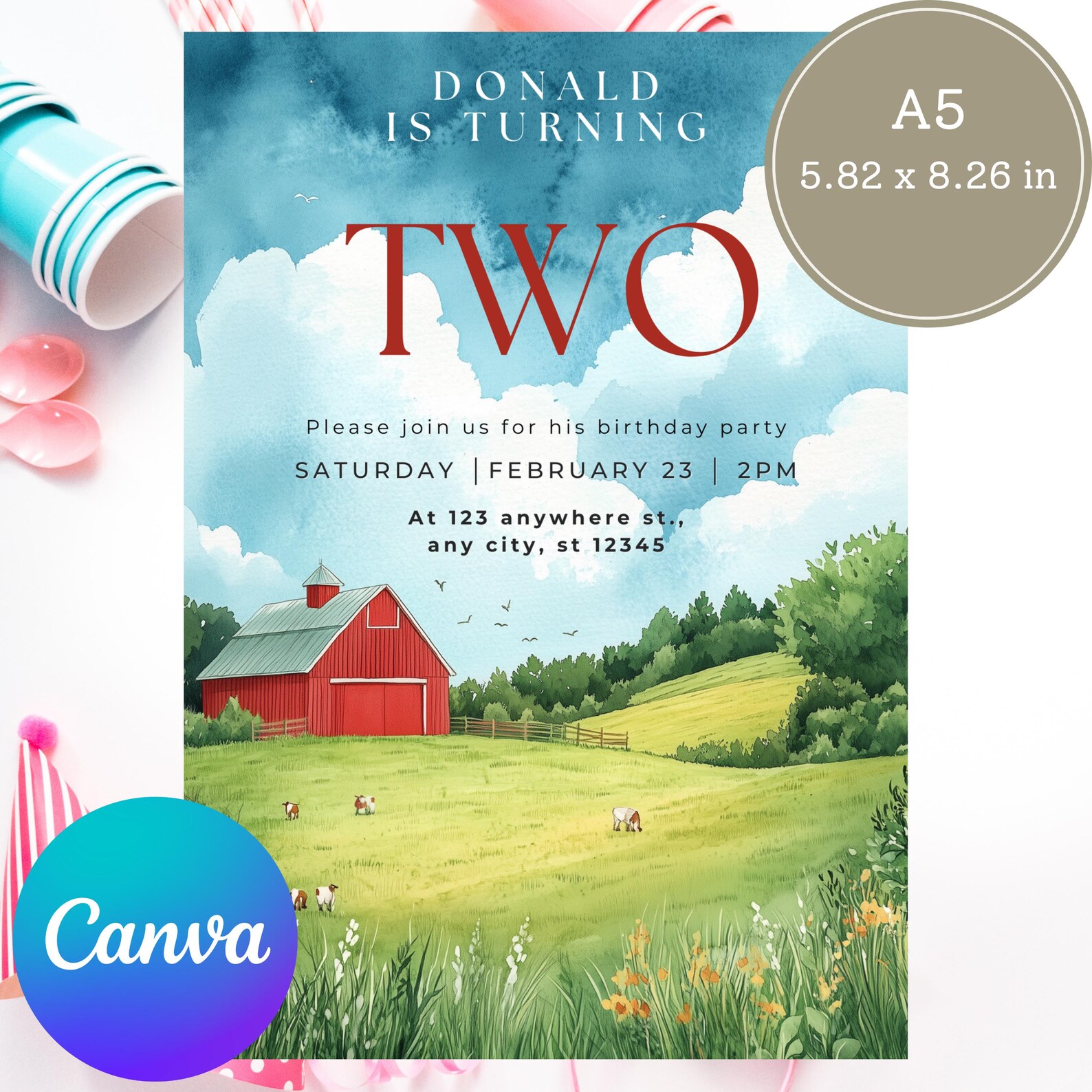 Editable Farm Birthday Invitation Card, Ranch Cow and Calf Birthday ...