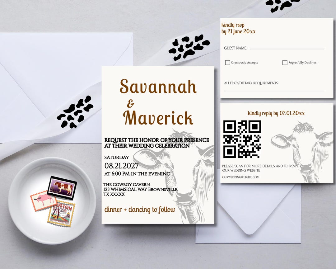 Rustic Cow Wedding Invitations | Farm wedding invitation, Wedding ...