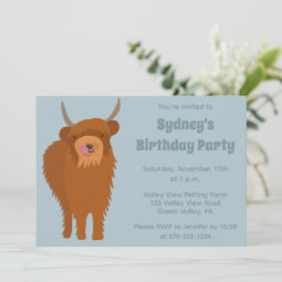 Scottish Highland Cattle Light Blue Birthday Party Invitation | Zazzle