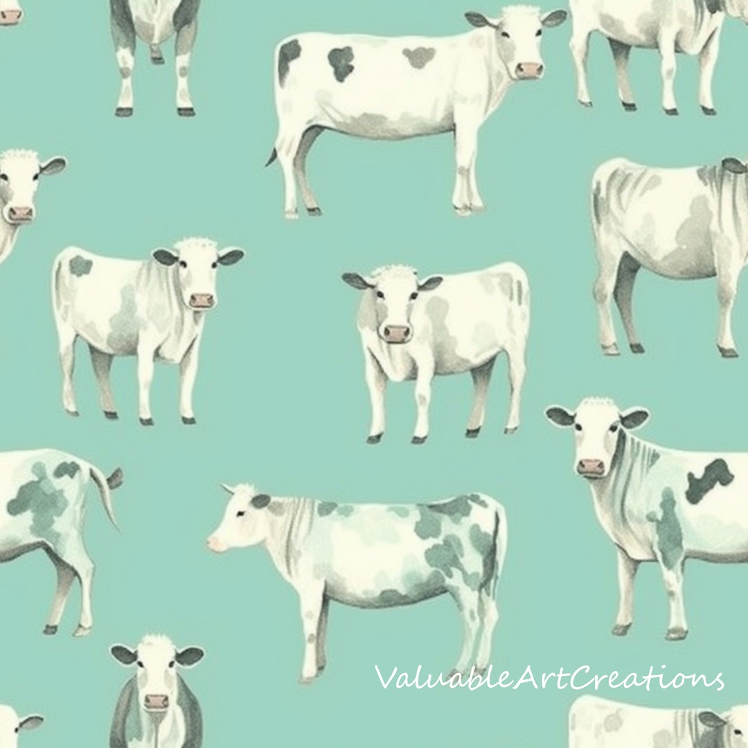 Cow, Seamless Pattern on Light Teal, Cows, Animal Pattern, - Etsy