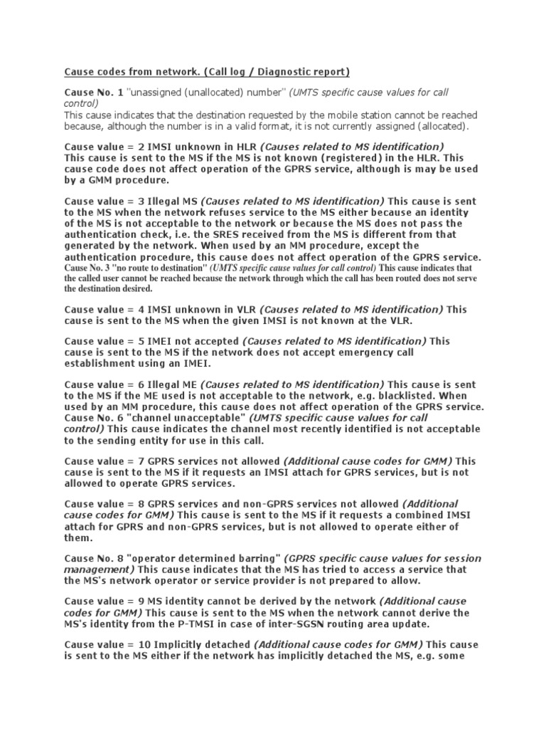 Common Call Disconnection Cause Codes | PDF | Public Switched Telephone ...