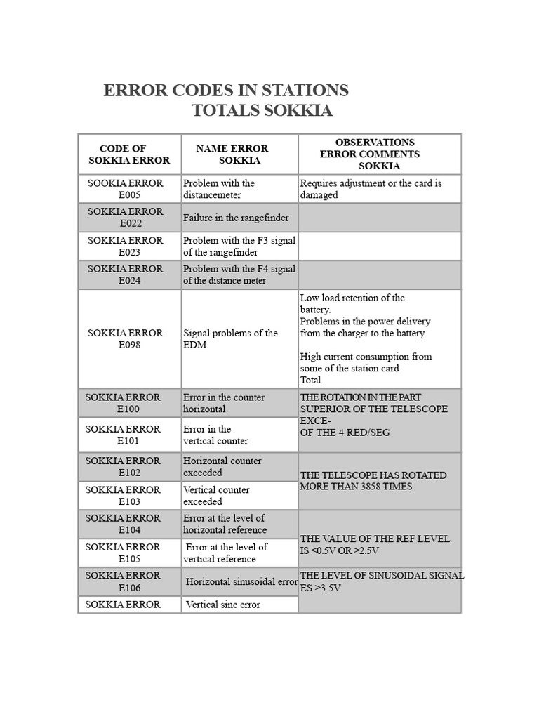 Error Codes of Total Stations | PDF | Telecommunications Engineering ...
