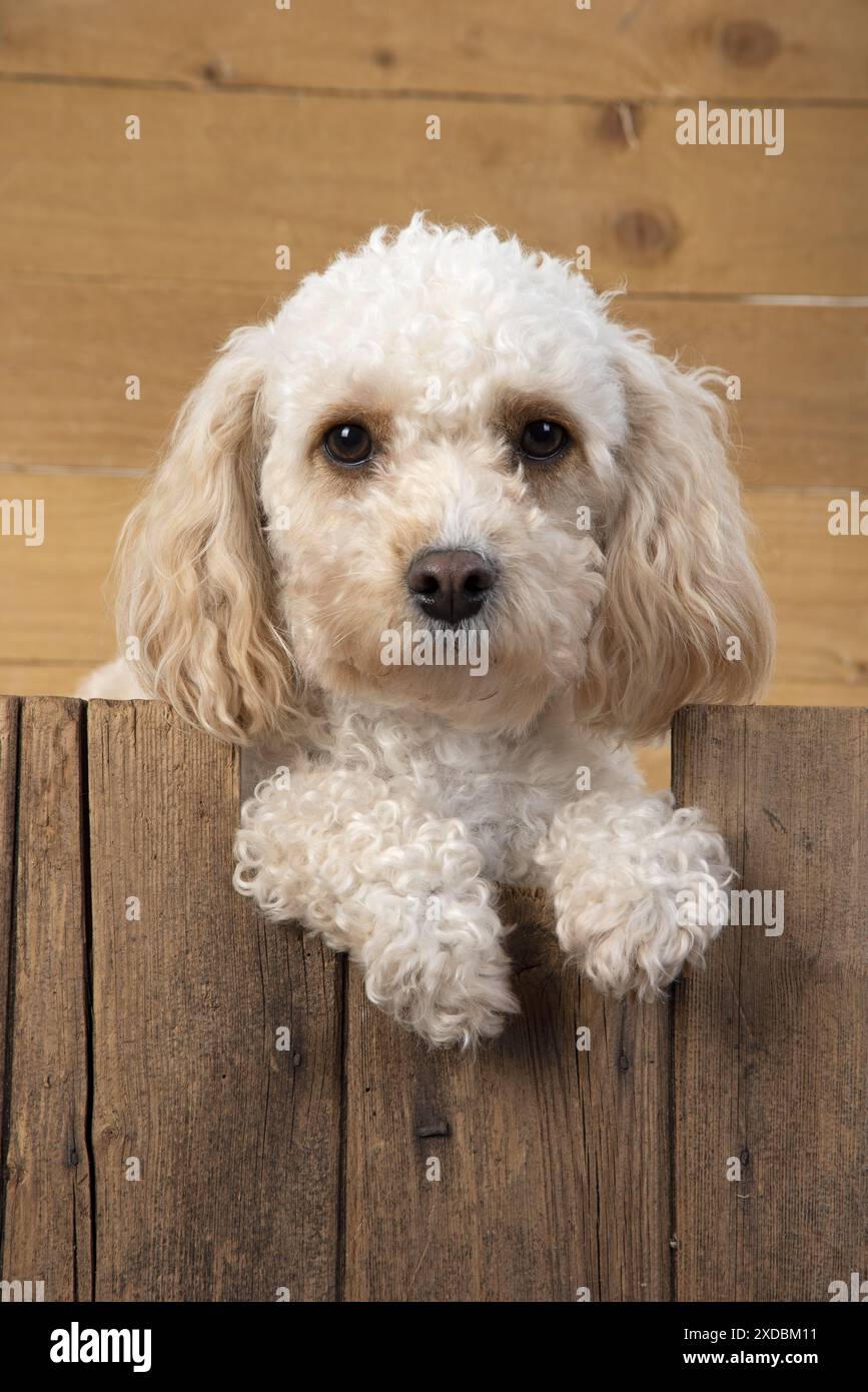 DOG. Cavapoo with paws over wood Stock Photo - Alamy