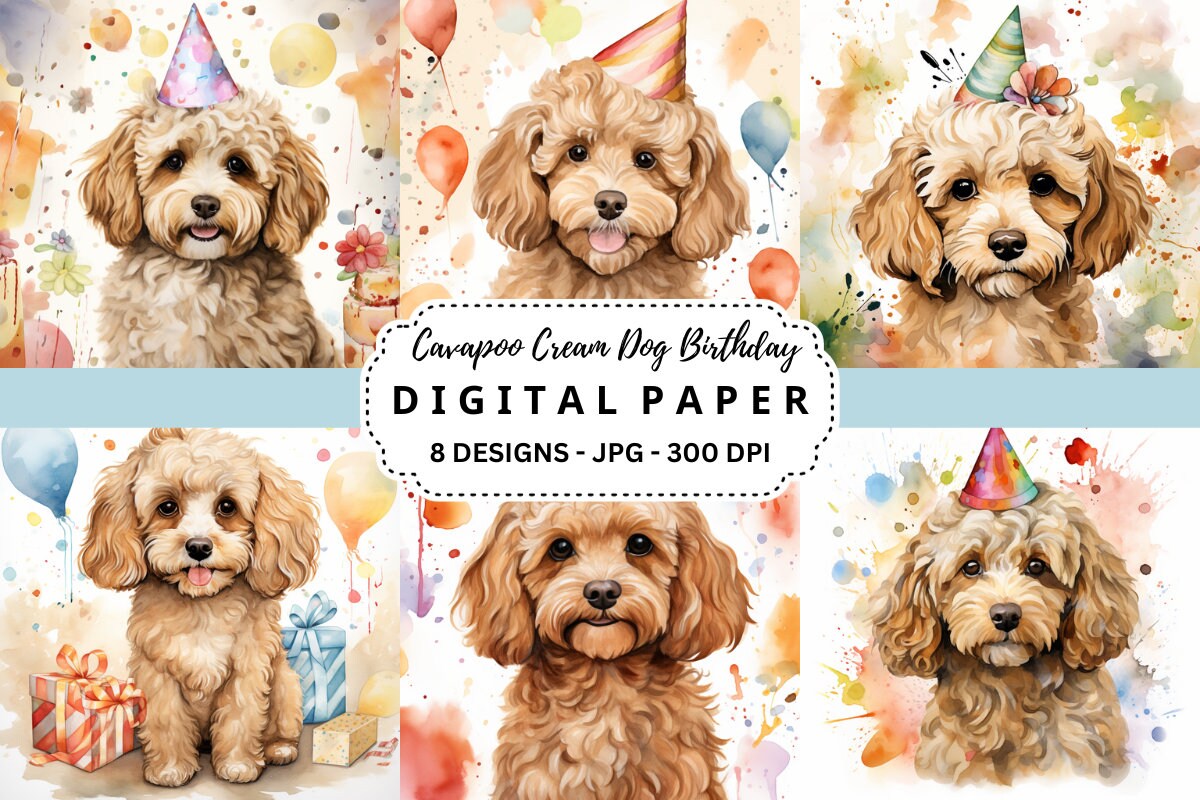 Cavapoo Cream Dog Birthday Backgrounds Watercolor Celebrate - Etsy