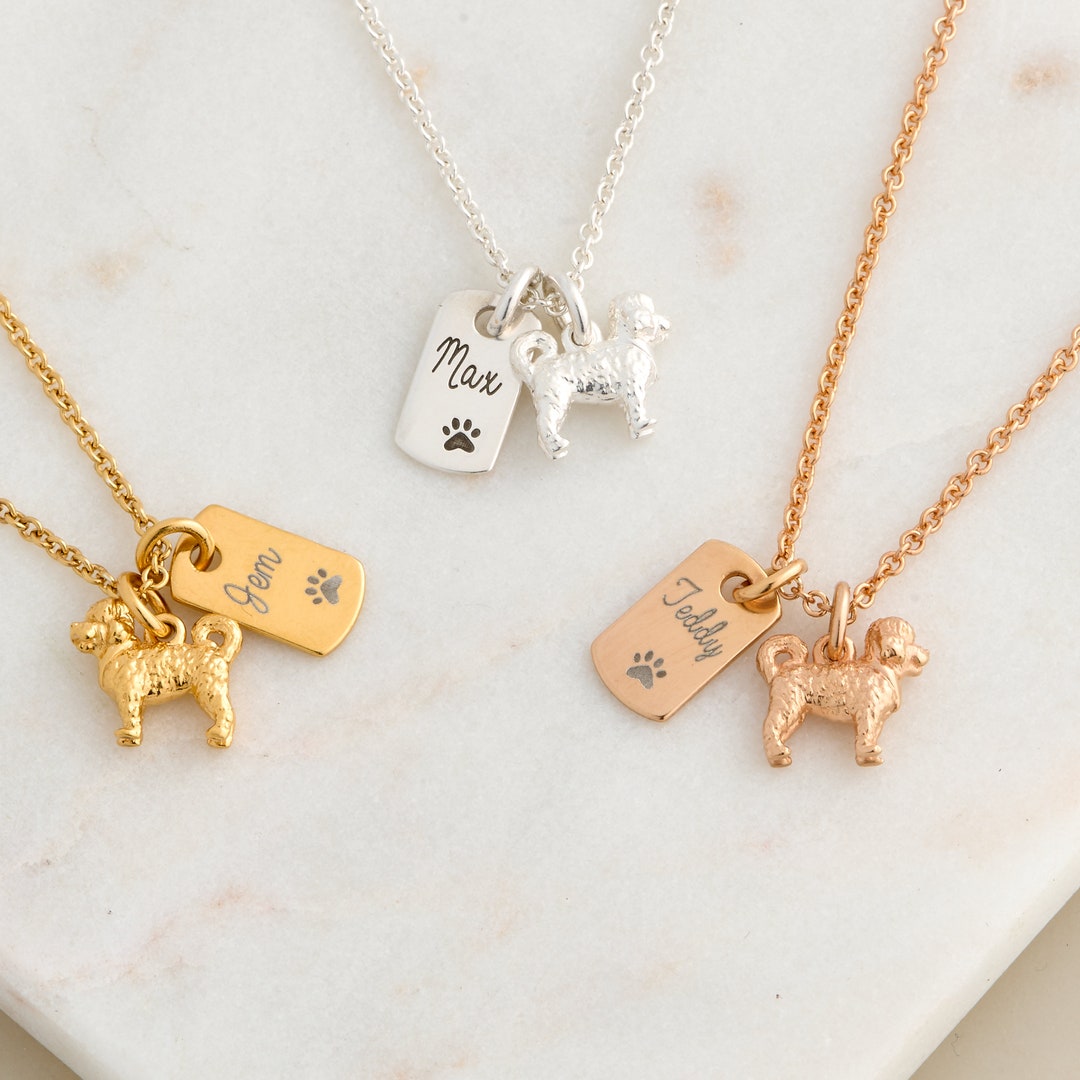 Personalized Cavapoo Necklace: Sterling Silver Dog Charm, Engraved Tag ...