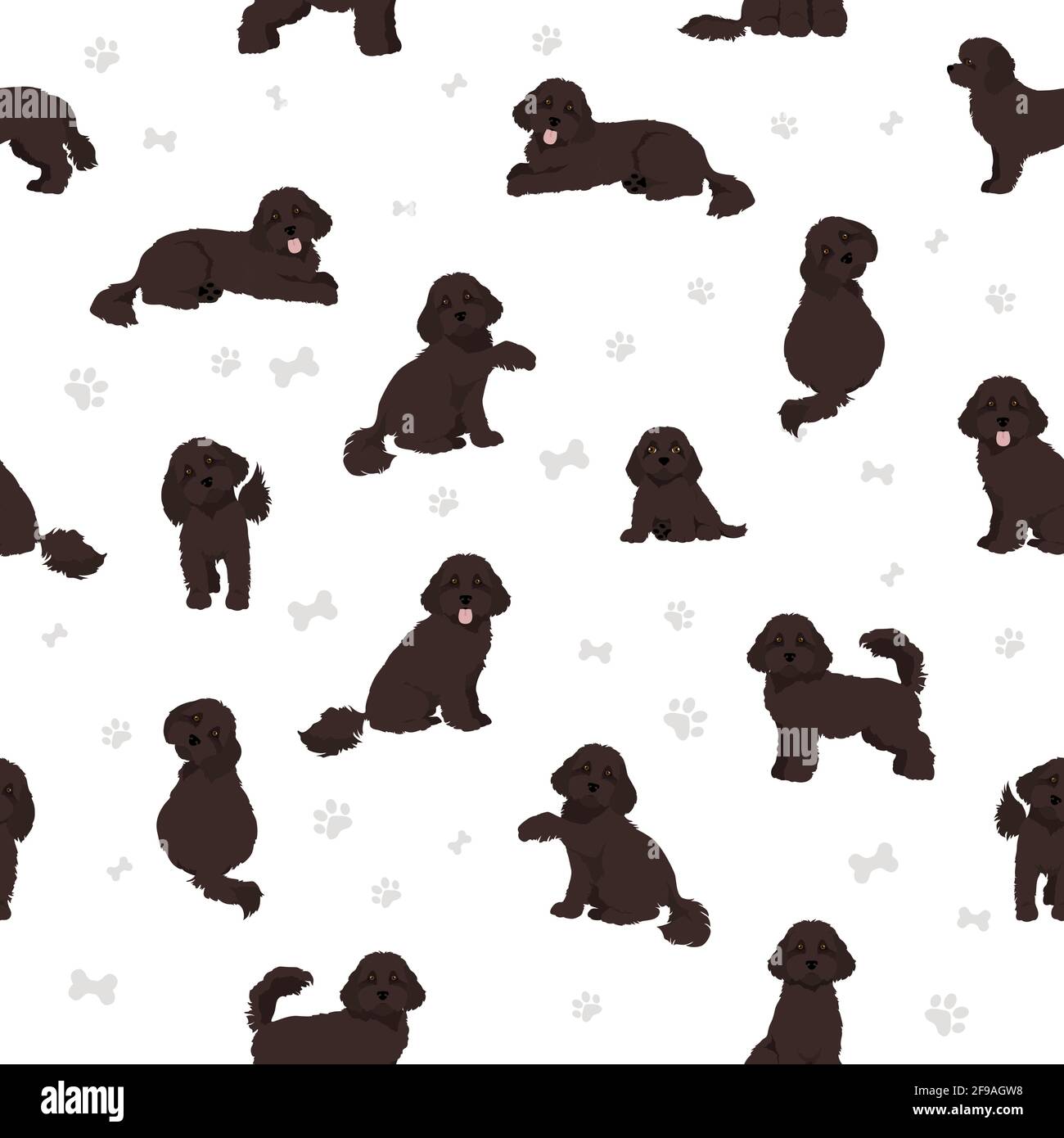 Cavapoo mix breed seamless pattern. Different poses, coat colors set ...