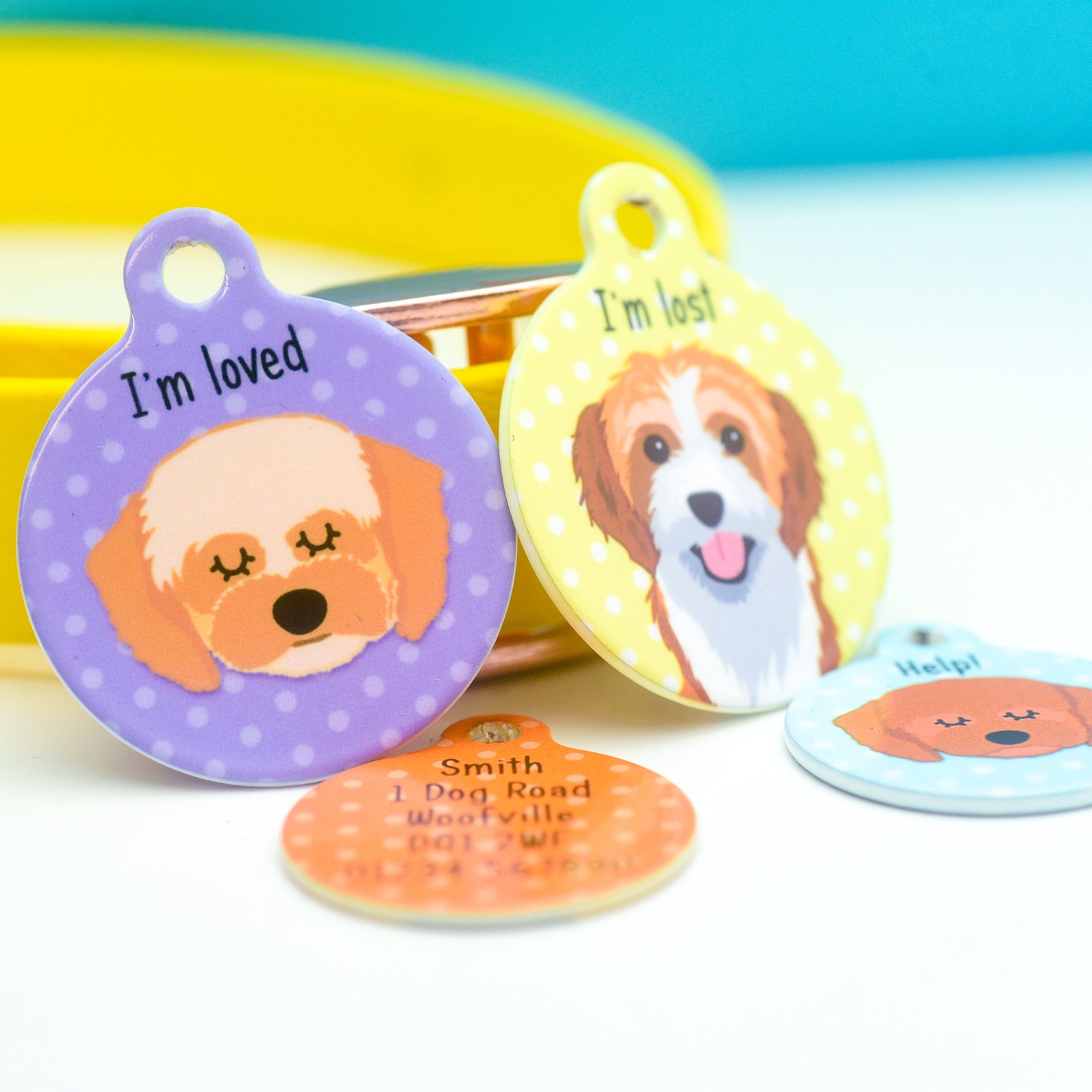 Cavapoo Tag Cute Personalised Dog Portrait Collar Pet Name ID Tags ...