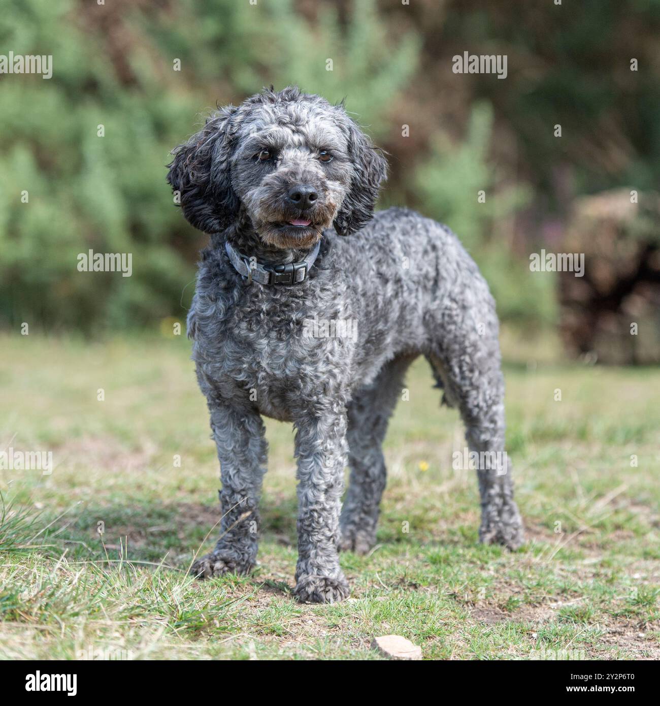Two cavapoo dogs on leads at the park in England Stock Photo - Alamy