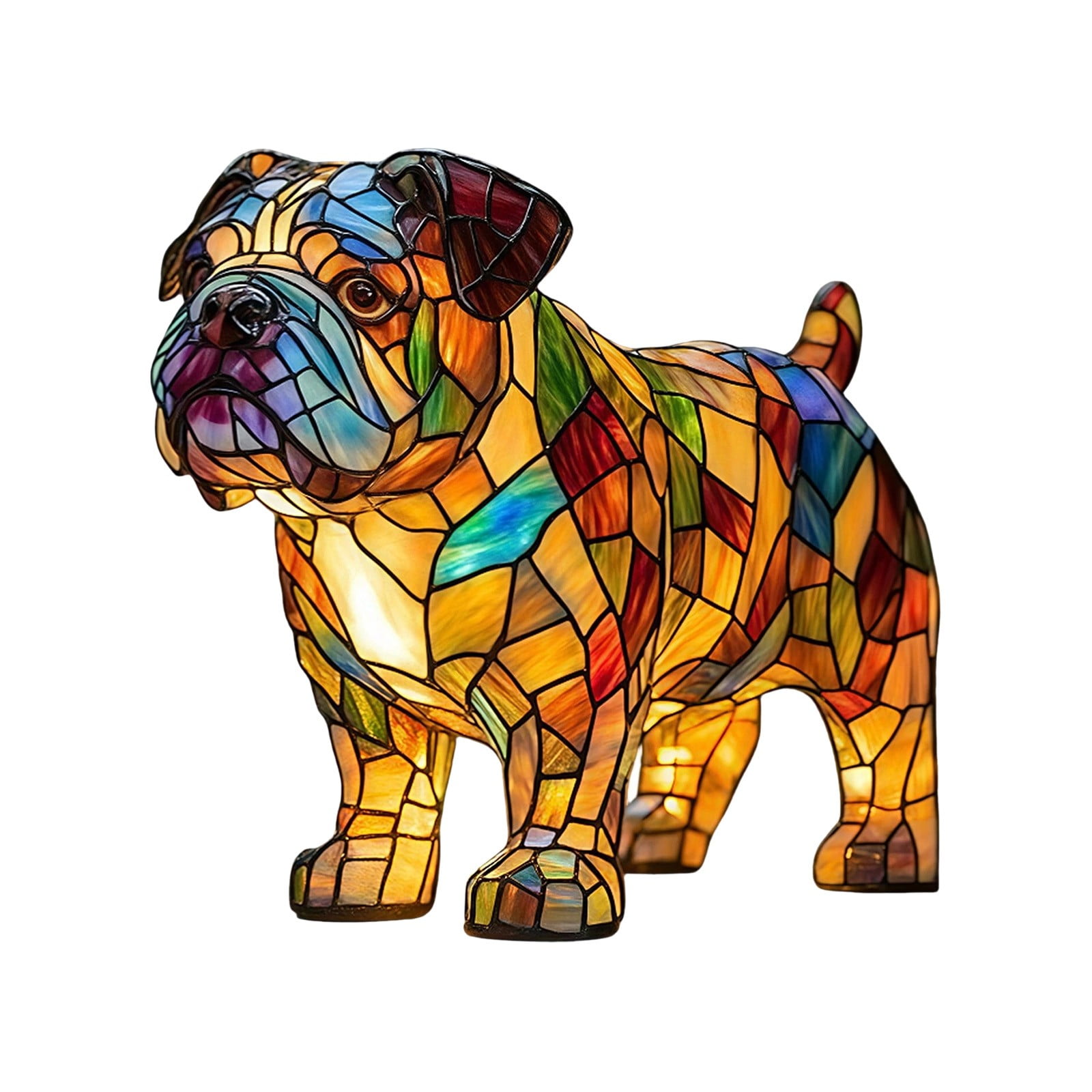 Mr Glow Dog Lamp - 3D Cute Bulldog LED Night Light with Stained Glass ...
