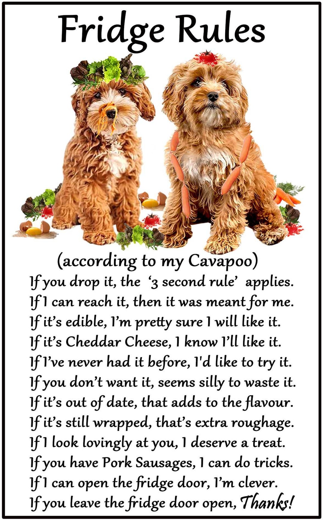 Cavapoo Dog Lovers Gift Fridge Rules Large Flexible Magnet. - Etsy UK