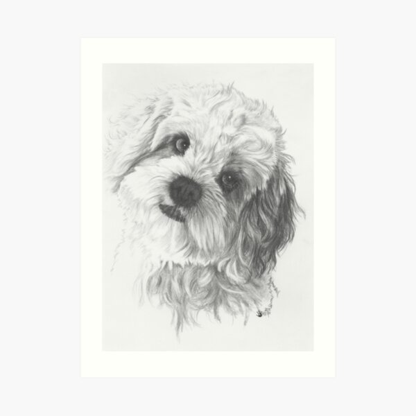 "Cavachon Portrait in Graphite" Art Print by BarbBarcikKeith | Redbubble