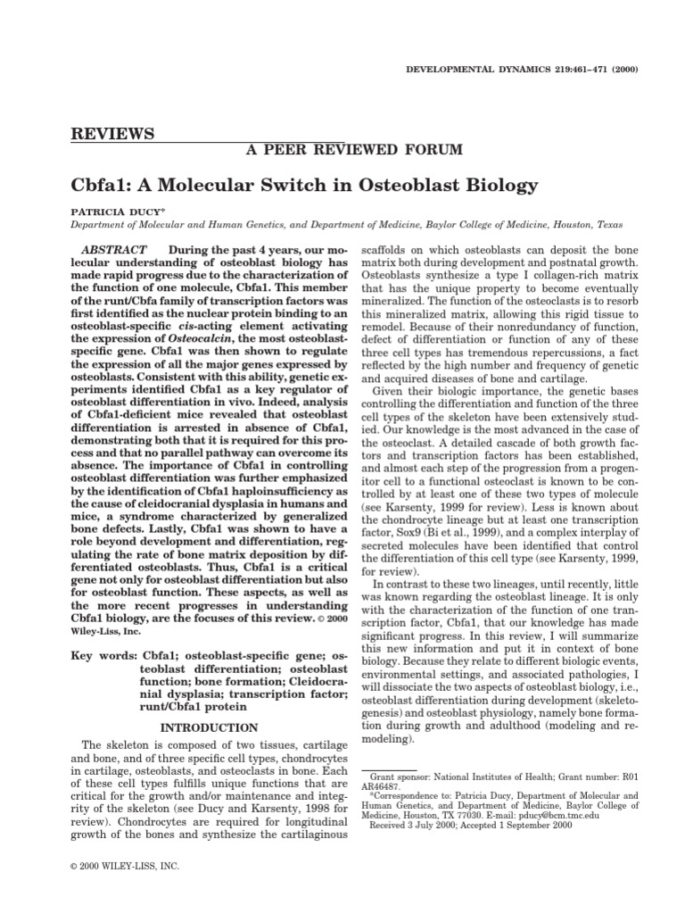 Cbfa1: A Molecular Switch in Osteoblast Biology: Reviews | PDF ...