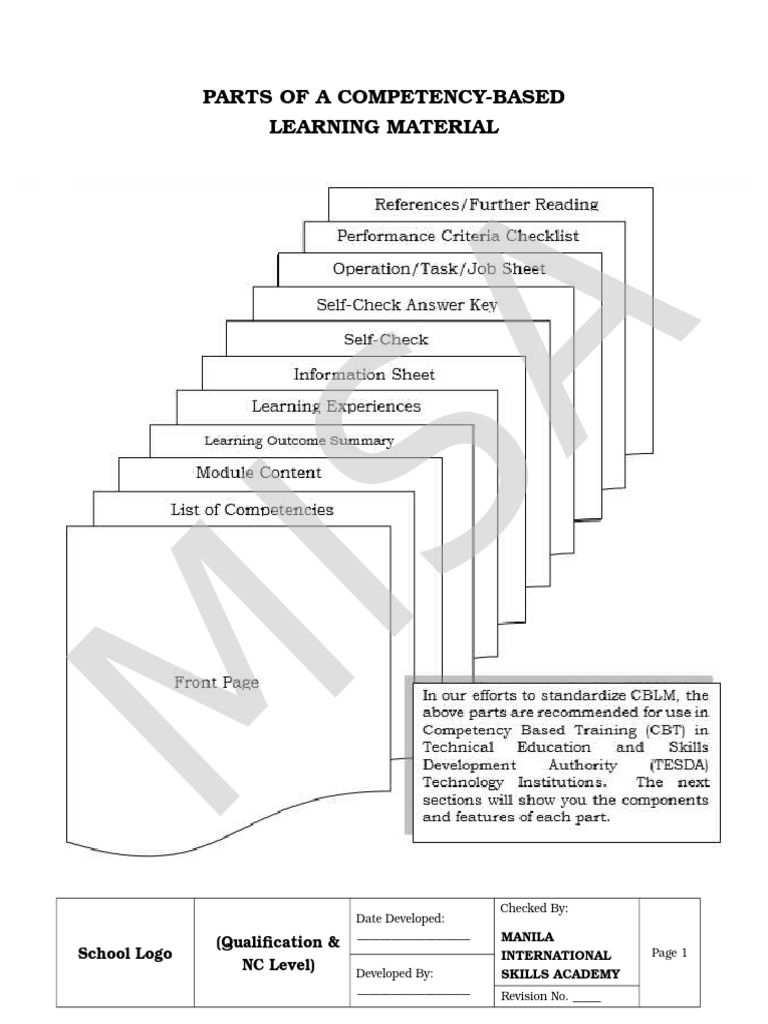 CBLM or Learning Materials - SCHOOL LOGO Trainers Methodology Level I ...