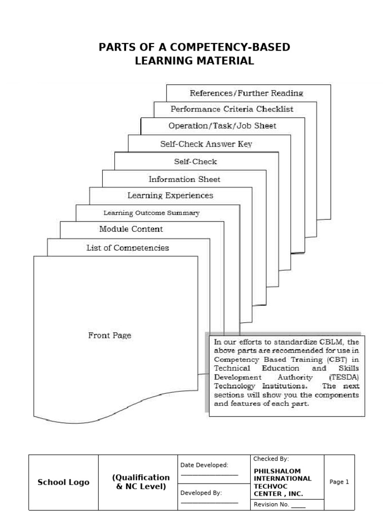 CBLM - PARTS OF A COMPETENCY-BASED LEARNING MATERIAL ####### CBLMs on ...