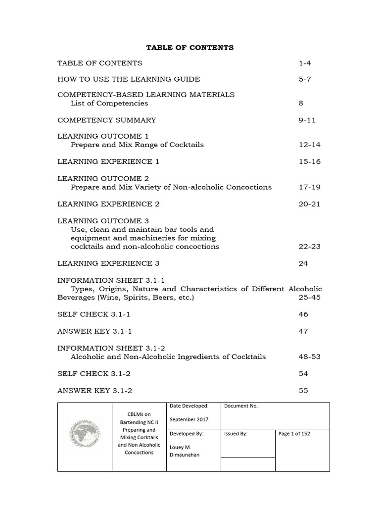 02 CBLM Infosheets | PDF | Drink | Bartender