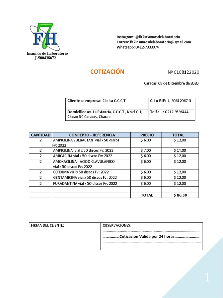 Cotización $ Clínica CCCT 0109122020 | PDF