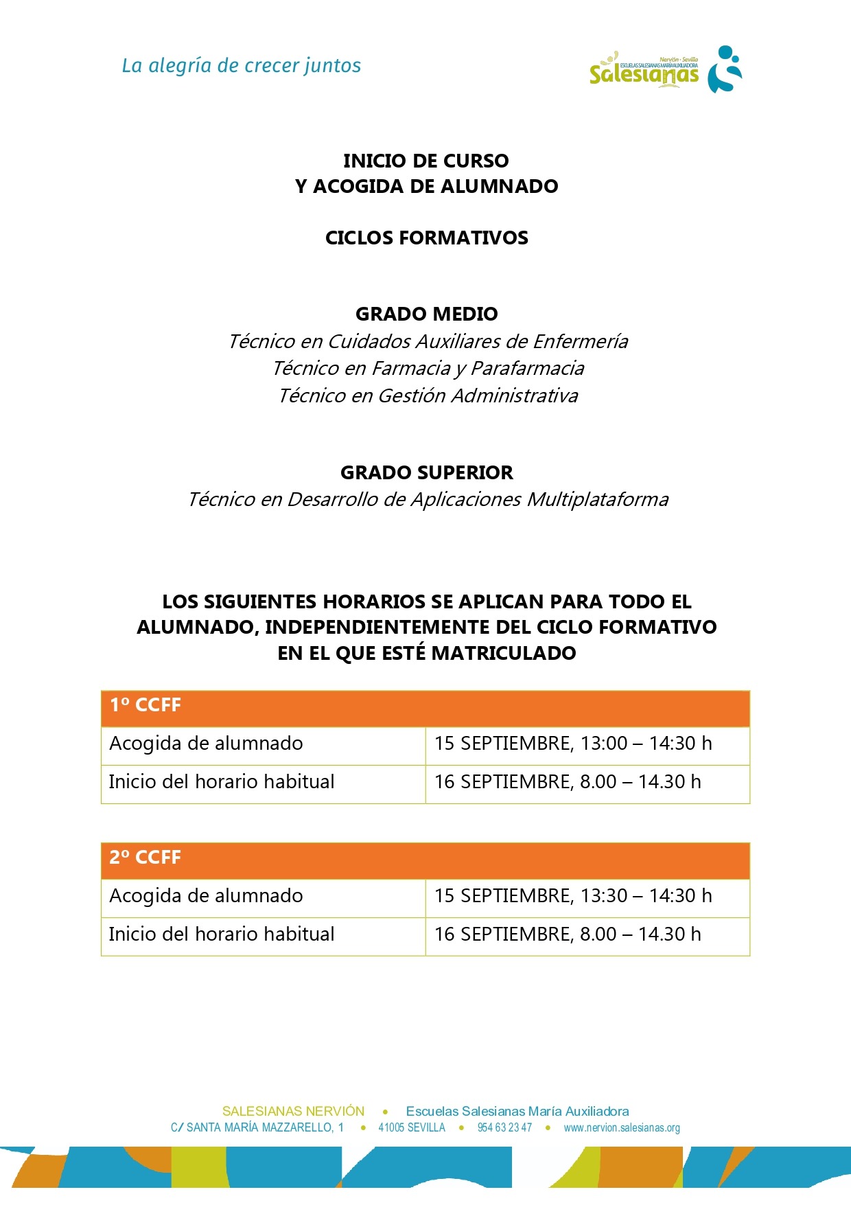 Inicio de curso: CCFF | EESS Mª Auxiliadora Nervión