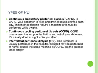 Types of Peritoneal Dialysis - HOME PERITONEAL DIALYSIS